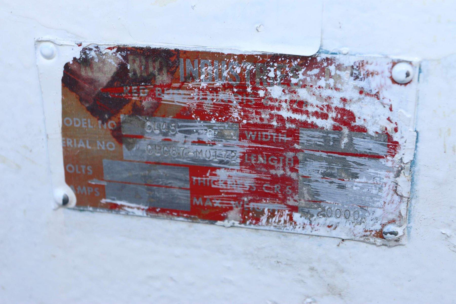 SERIAL ..................... CLC87-M0172 MODEL ...................... CL45 CAPACITY ................... 20,000 LBS LIFTING HEIGHT ............. 45" PENDANT CONTROL ............ YES |