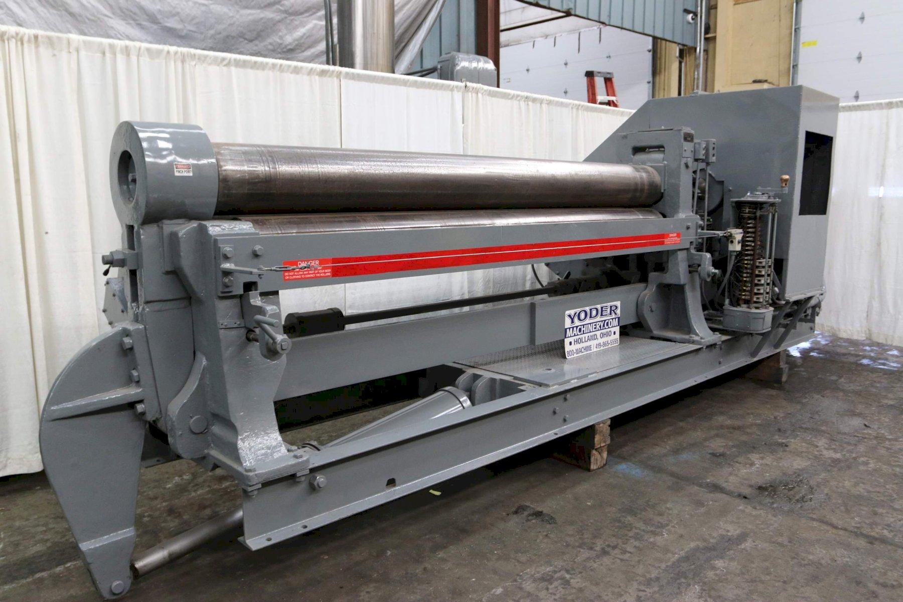SERIAL ........................ 8244 MODEL ......................... 11 CAPACITY ...................... 1/2" DIAMETER OF ROLLS ............. 11-1/2" LENGTH OF ROLLS ............... 10'2" VARIABLE SPEED ................ DRUM SWITCH POWER REAR ROLL ADJUSTMENT .... YES AIR DROP END .................. YES REAR ROLL ADJUSTMENT MOTOR .... 7-1/2 HORSEPOWER LUBE SYSTEM ................... YES MAIN MOTOR .................... 15 HORSEPOWER |