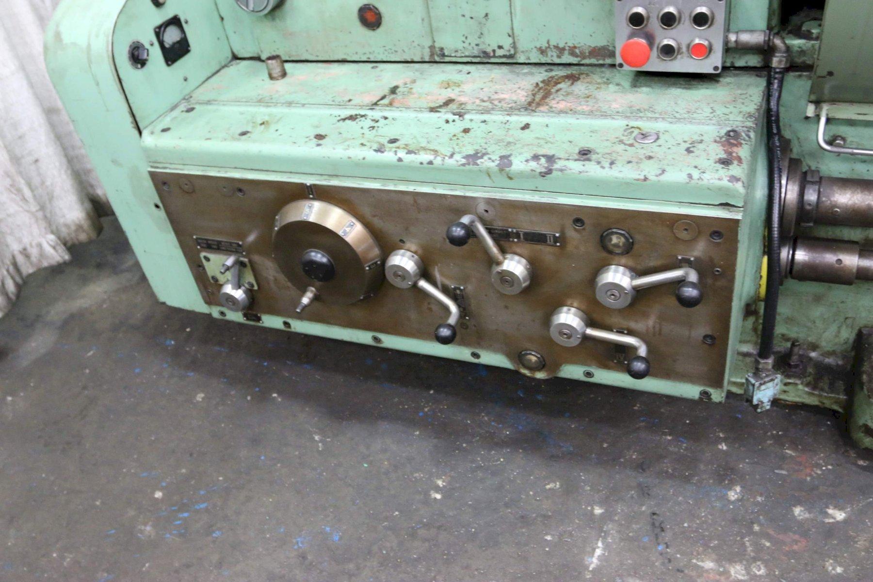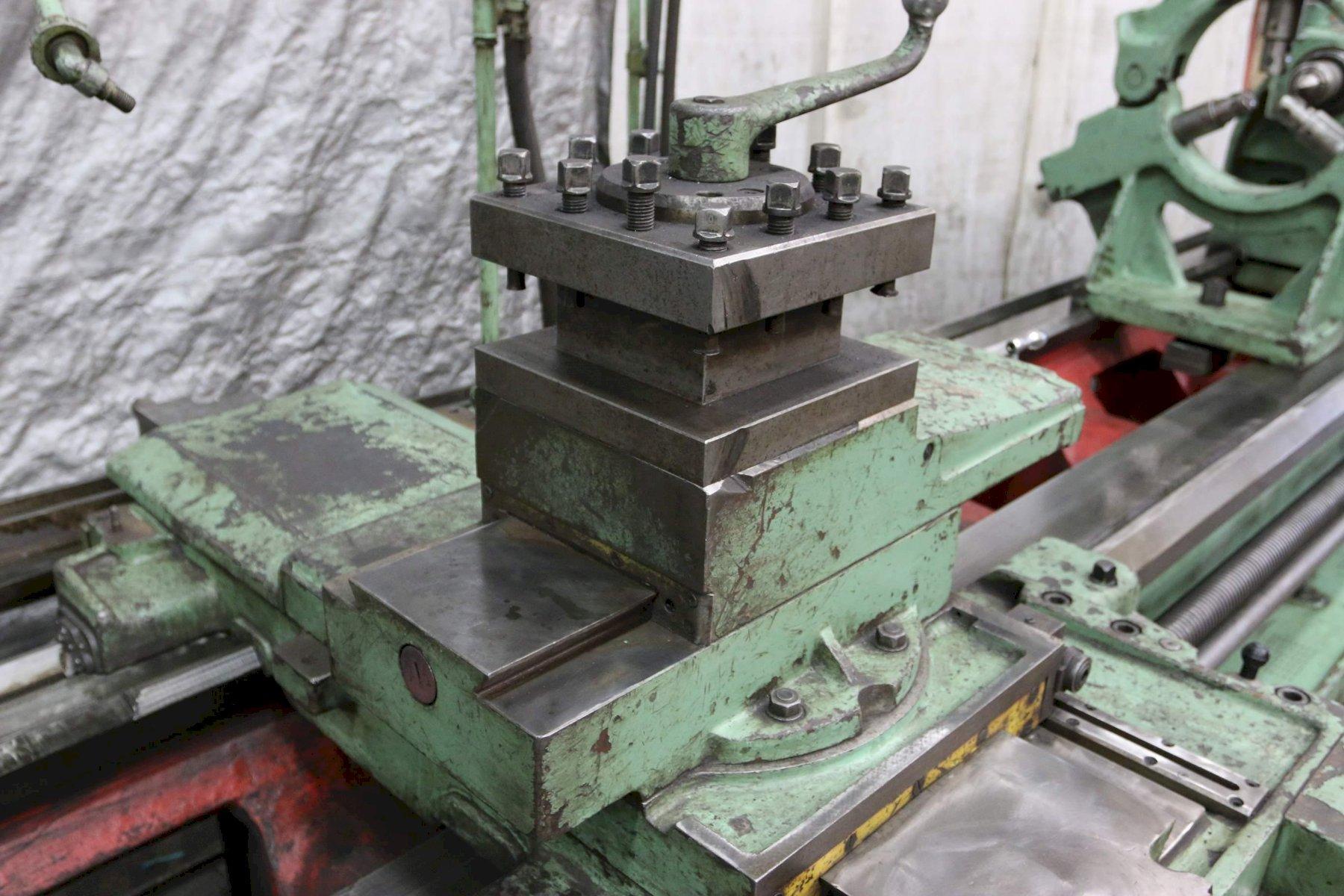 SERIAL ................................. 12061 MODEL .................................. 165X5000 YEAR INSTALLED ......................... 1975 SWING OVER WAYS ........................ 41" SWING OVER CROSS SLIDE ................. 26" DISTANCE BETWEEN CENTERS ............... 196" (16') SPINDLE SPEEDS ......................... (24) 5 TO 500 RPM LONGITUDINAL FEEDS ..................... .0008 TO 0.041 IPR THREADS ................................ 1/4 TO 32 TPI METRIC THREADS ......................... 1 TO 120 MM PITCH DIAMETER OF SPINDLE HOLE ............... 3.75" RAPID TRAVERSE ......................... 4 WAY CHUCK .................................. 39" 4-JAW CHUCK TAPER ATTACHEMENT ...................... YES HARD WAYS .............................. YES STEADY REST ............................ 15" 3 POINT ROLLER FOLLOW REST ............................ YES COOLANT ................................ YES MOTOR .................................. 25 HORSEPOWER |