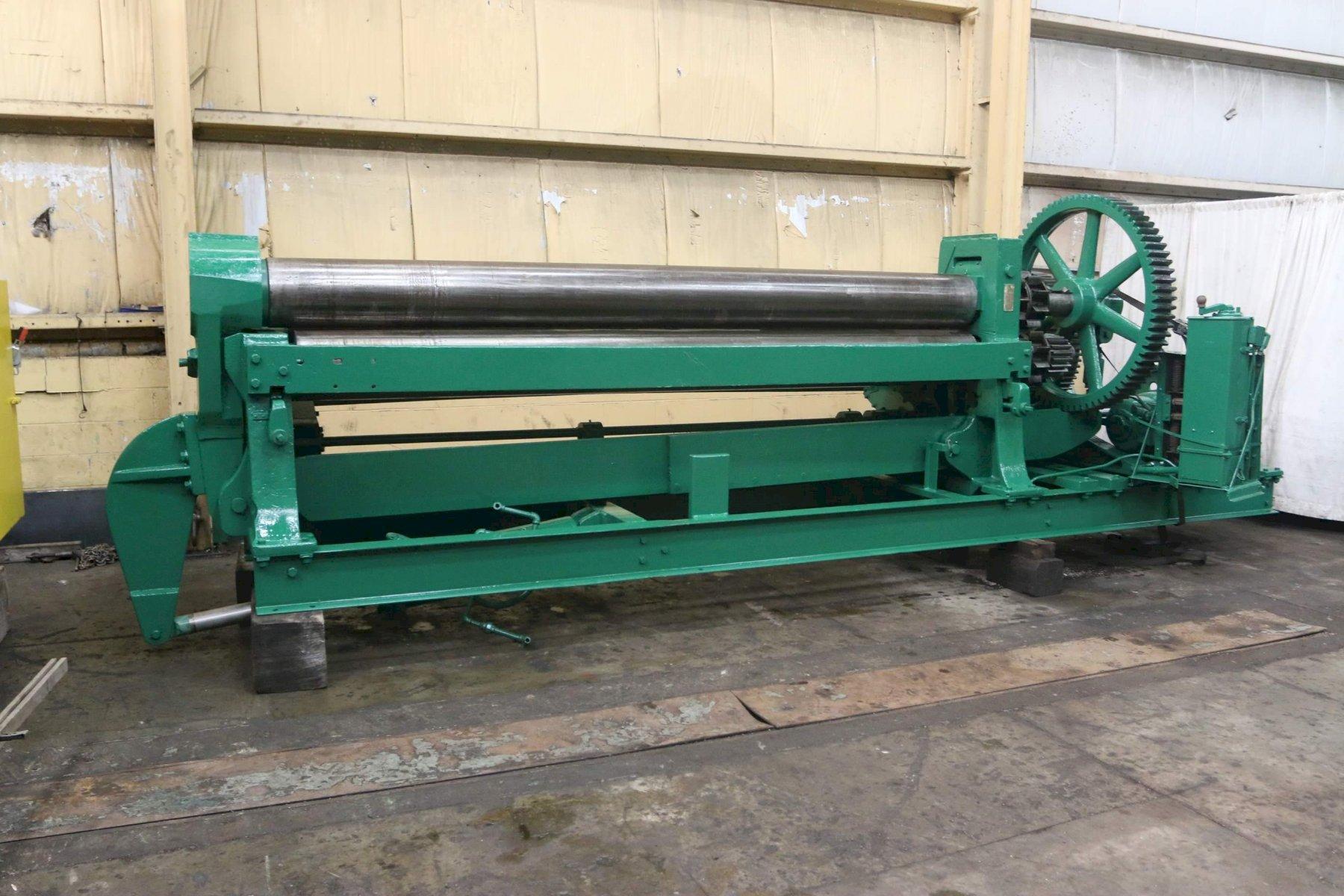 SERIAL ................................ M-6890 MODEL ................................. 11 OVERALL LENGTH OF ROLLS................ 12' CAPACITY .............................. 1/2" MILD STEE DIAMETER OF ROLLS ..................... 12-1/2" POWER REAR ROLL ADJUSTMENT ............ YES MANUAL WEDGE BOTTOM ROLL ADJUSTMENT ... YES AIR DROP END .......................... YES VARIABLE ROLL SPEED ................... YES MAIN DRIVE MOTOR ...................... 20 HORSEPOWER REAR ROLL ADJUSTMENT MOTOR ............ 10 HORSEPOWER |