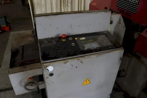 SERIAL ....................... 201487 MODEL ........................ HBP303A YEAR NEW ..................... 2001 CAPACITY RECTANGLES .......... 11.81" X 11.81" CAPACITY (ROUND) ............. 11.81" BLADE DIMENSION .............. 182" X .050 X 1.61" BLADE SPEED (VARIABLE) ....... 62 TO 426 FPM FEED FORCE (VARIABLE) ........ 0 TO 300 LBS AUTOMATIC BAR FEED ........... 0" TO 24" MAXIMUM INDEXING CYCLES .............. 3 BUNDLE CUTTING (NESTING) ..... YES HYDRAULIC BLADE TENSION ...... YES LOAD CAPACITY ................ 5600 LBS. FLOOR TO TOP OF TABLE ........ 27-1/2" PIECE COUNTER ................ YES DIGITAL RPM DISPLAY .......... YES PROGRAMABLE CONTOLS .......... YES HYDRAULIC DRIVE MOTOR ........ 1 BLADE DRIVE MOTOR ............ 5 HORSEPOWER COOLANT PUMP ................. 1/8 HORSEPOWER |