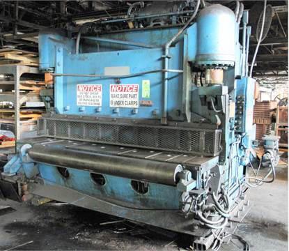 SERIAL ......................... S10200 MODEL .......................... 500HD8 CAPACITY ....................... 8' X 1/2" CAPACITY AT MAXIMUM RAKE ....... 8' X 3/4" DISTANCE BETWEEN HOUSING ....... 8'3" DEPTH OF THROAT ................ 18" RAKE ........................... 1/2" PER FOOT SHEARING SPEED - ADVANCE ....... 90 IPM SHEARING SPEED - RETURN ........ 260 IPM STROKES PER MINUTE FULL STROKE . 10 STROKES PER MINUTE @ 24" ....... 30 MAXIMUM KNIFE OPENING .......... 1-1/2" FRONT STOCK ROLLER ............. POWERED REAR POWERED CONVEYOR .......... YES HOLDDOWN TONNAGE ............... 33 FLOOR STANDING ................. YES ELECTRIC FOOT PEDAL ............ YES AUTO LUBE SYSTEM ............... YES HYDRAULIC MOTOR ................ 40 HORSEPOWER |