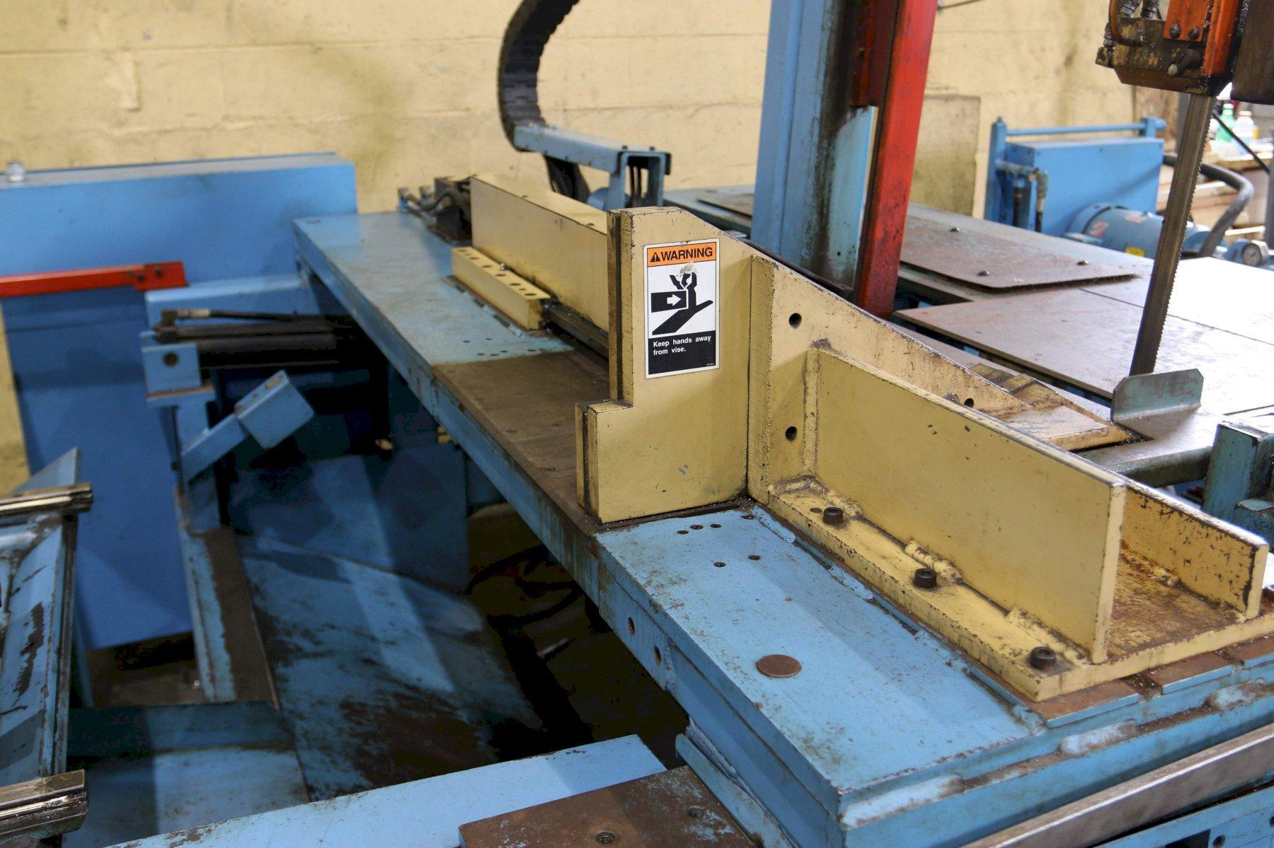 SERIAL ...................... 541-03118 MODEL ....................... TF-2025NC YEAR NEW .................... 2003 CAPACITY (RECTANGLES) ....... 20" X 25" CAPACITY 45 DEGREES ......... 17" X 20 CAPACTIY 60 DEGREES ......... 11" X 20" CAPACITY (ROUND) ............ 20" CAPACITY 45 DEGREES ......... 17" CAPACITY 60 DEGREES ......... 11" BLADE SPEEDS ................ 50 TO 400 FPM HYDRAULIC HEAD TILT ......... 60 DEGREE EITHER WAY HYDRAULIC VISE .............. YES WFDTH OF BLADE .............. 1-1/4" X .042" LENGTH OF BLADE ............. 209" PASSLINE HEIGHT ............. 38" PLC PROGRAMMABLE CONTROL .... YES INDEXING VISE ............... YES HYDRAULIC BAND TENSION ...... YES UPPER SAW GUADE POST ........ YES HYDRAULIC HEAD FEED ......... YES COOLANT ..................... YES MOTOR ....................... 10 HP |