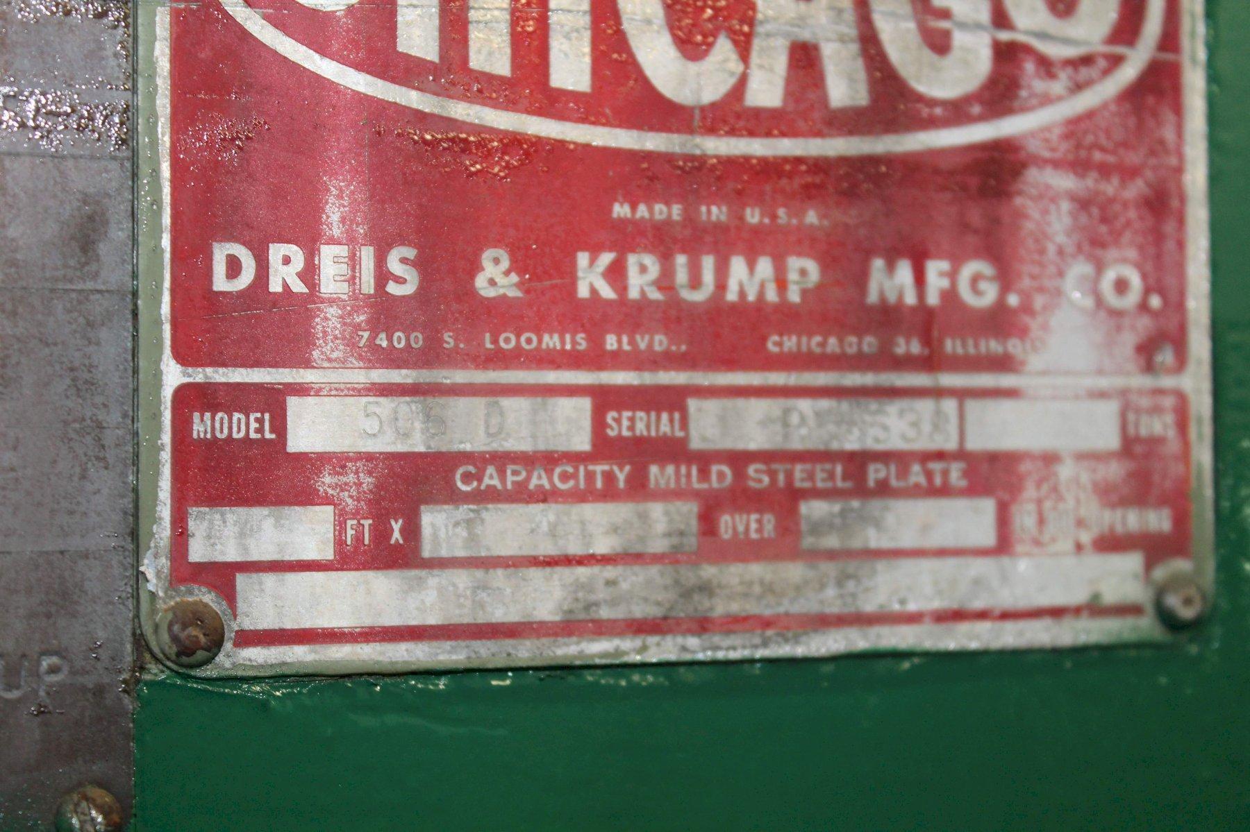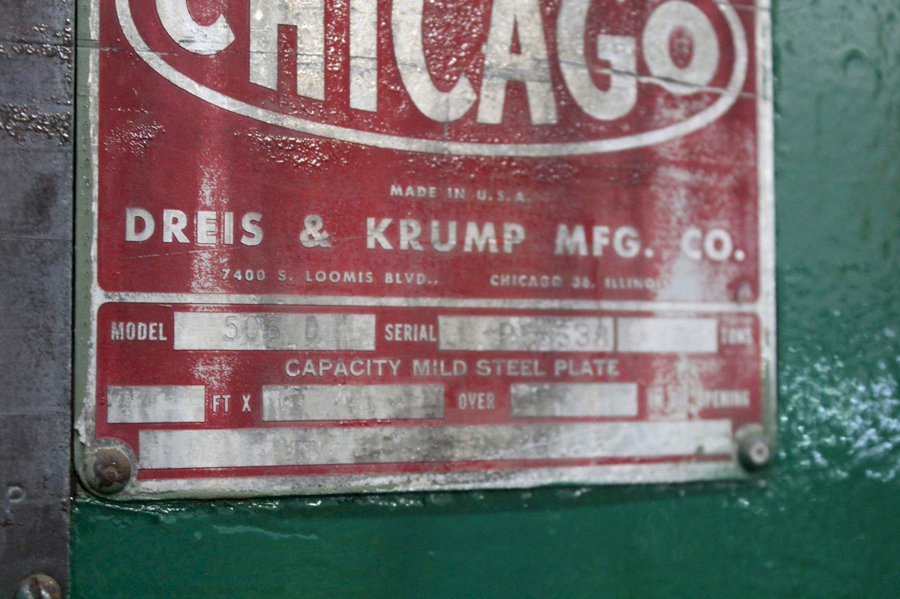 SERIAL ........................... P8538 MODEL ............................ 506D CAPACITY ......................... 225 TON OVERALL LENGTH OF BED ............ 8'2" DISTANCE BETWEEN HOUSINGS ........ 6'6" DEPTH OF THROAT .................. 8" STROKE ........................... 3" RAM ADJUSTMENT ................... 5" DIE SPACE (STROKE DOWN, ADJ UP) .. 12" STROKES PER MINUTE ............... 30 LUBE SYSTEM ...................... YES FLOOR STANDING ................... YES MOTOR ............................ 15 HORSEPOWER |