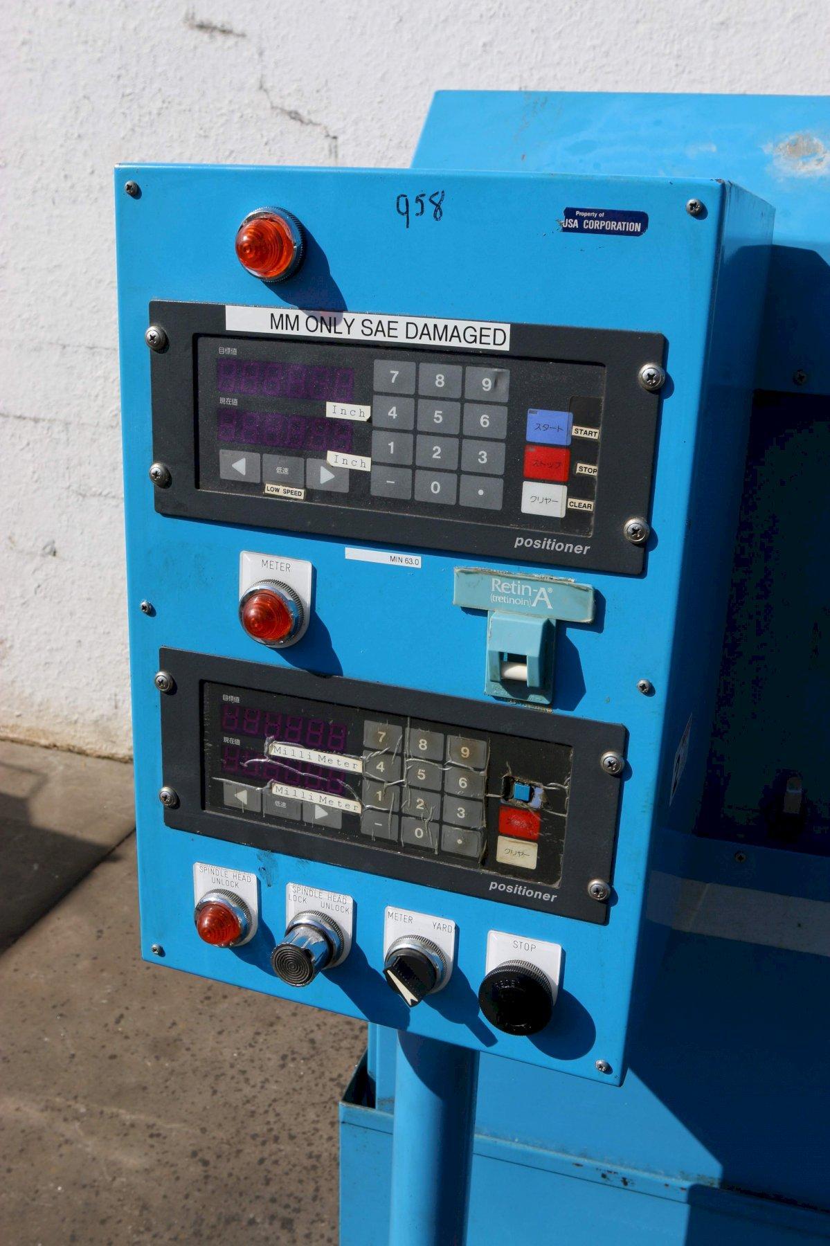 SERIAL ....................... 896 MODEL ........................ 1000 YEAR NEW ..................... 1990 WORK DIAMTER ................. 12" WORK LENGTH .................. 5" TO 36" HYDRAULIC CLAMPING ........... YES HYDRAULIC HEAD ADJUSTMENT .... YES DIGITAL READOUTS ............. YES MANUAL & AUTO MODE ........... YES MOTORS ....................... 2.2 KW |