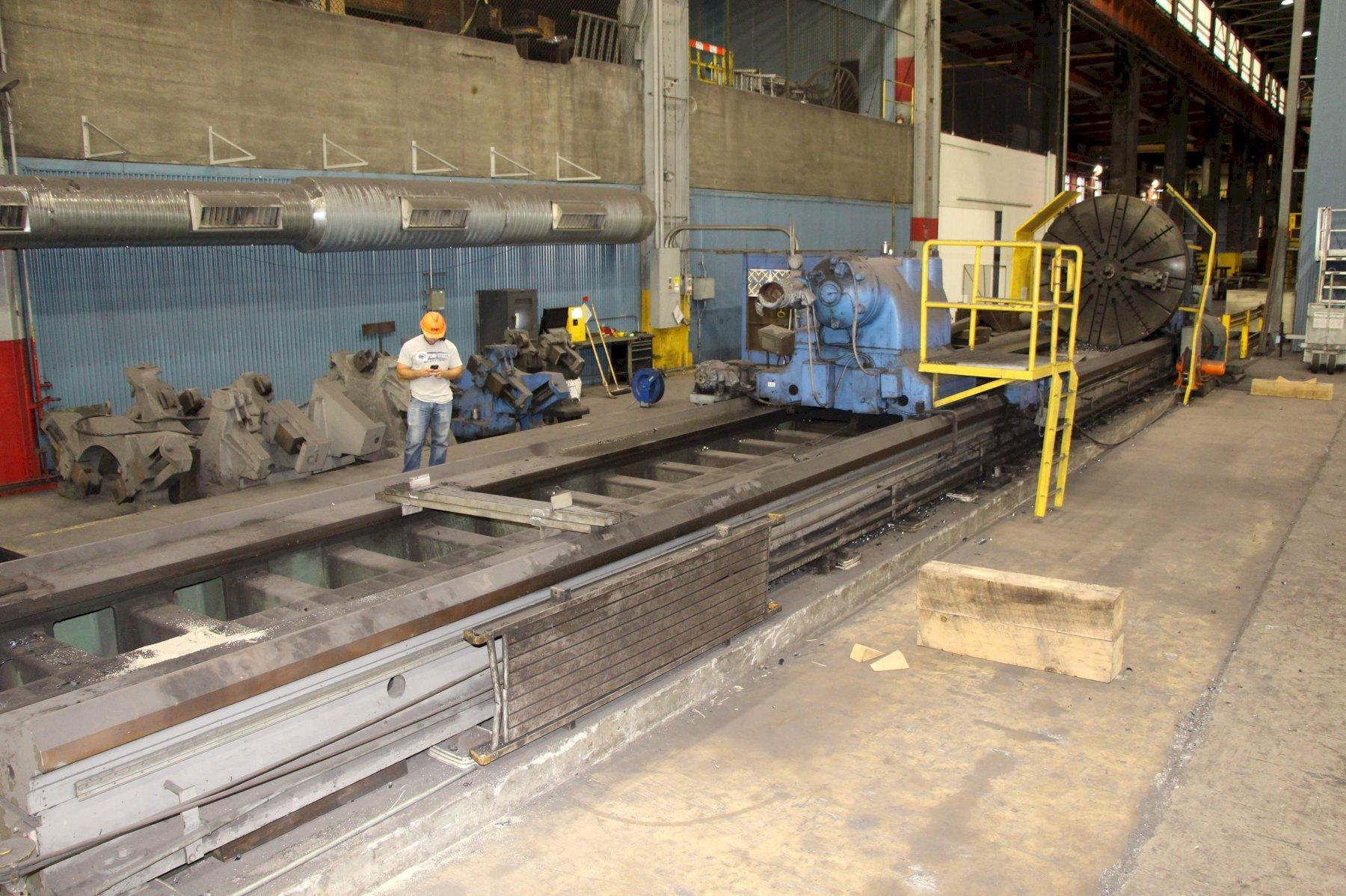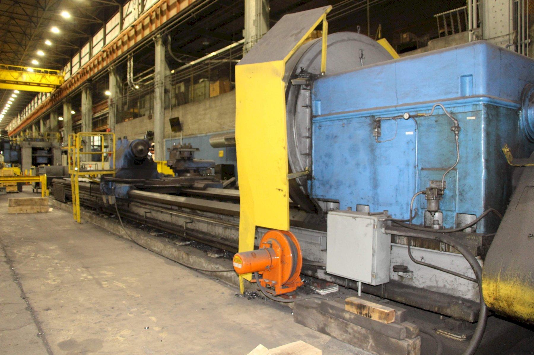 SERIAL ............................... 57R-724 SWING ................................ 100" SWING OVER CROSS SLIDE ............... 63.5" CENTERS .............................. 580" FACEPLATE DIAMETER ................... 96" VARIABLE SPEED ....................... 1 TO 80 RPM STEADY RESTS ......................... 20", 48", & MORE FULL LENGTH THREADING ................ YES MOTOTIZED TAIL STOCK QUILL ........... YES MOTORIZED TAIL STOCK TRAVEL .......... YES DIGITAL RPM READOUTS ................. YES OPERATOR PENDANT FROM CARRIAGE ....... YES RAPID TRAVERSE TO CARRIAGE ........... YES SPINDLE MOTOR ........................ 100 HP |