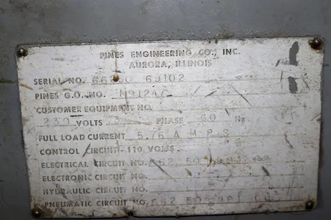 SERIAL ........................ 66250-69102 MODEL ......................... 662 CAPACITY ...................... 1/2"- 3" MINIMUM WORKPIECE LENGHT....... 3" SPINDLE STROKE ................ 1-1/2" MAXIMUM SPINDLE SPEEDS ................ 1,600- 4,000 RPM AUTOMATIC FOOT SWITCH ......... AIR OPERATED SPINDLE ADVANCE ............... YES AIR OPERATED CHUCK ASSEMBLEY .. YES CONTROLLED FEED ............... YES RAPID RETURN .................. YES MOTOR ......................... 2 HORSEPOWER |