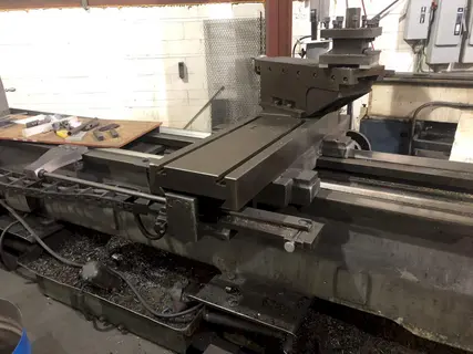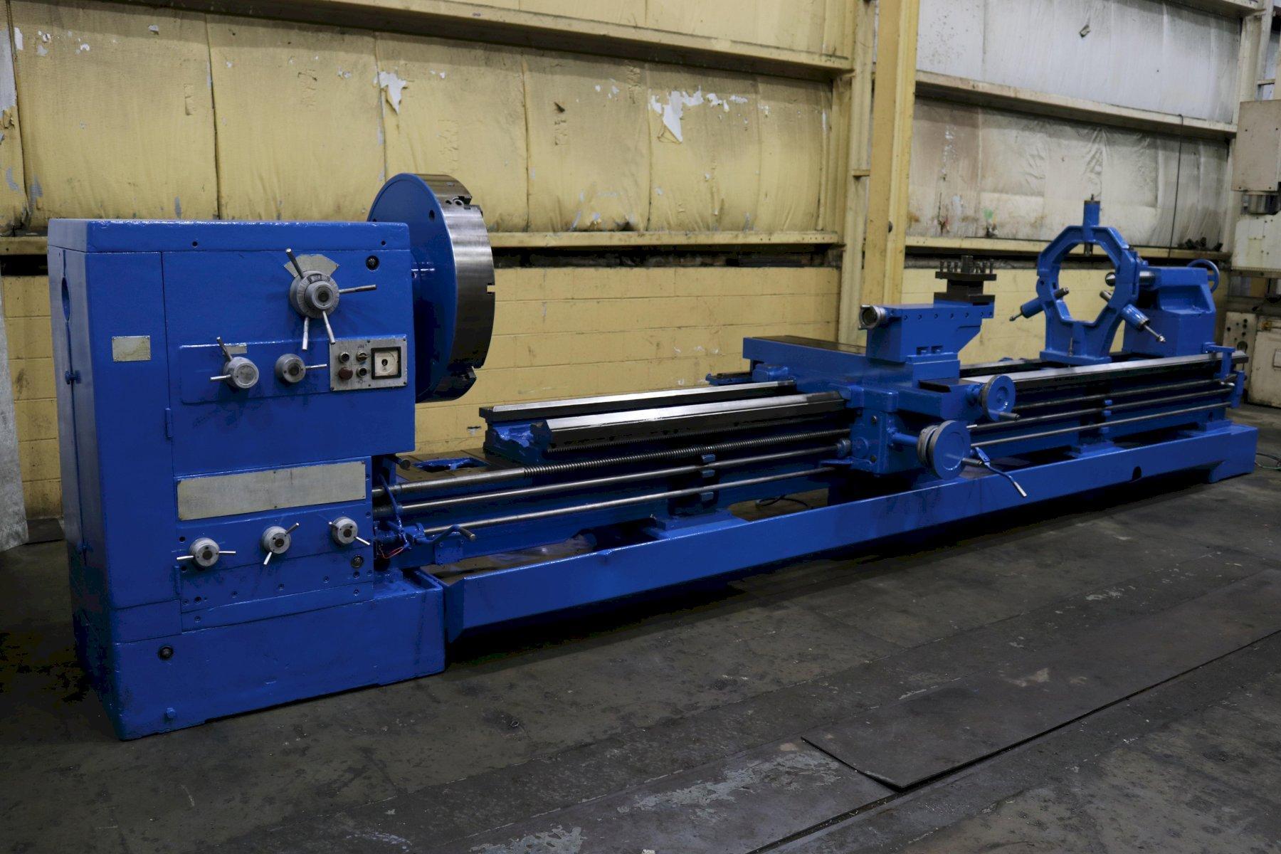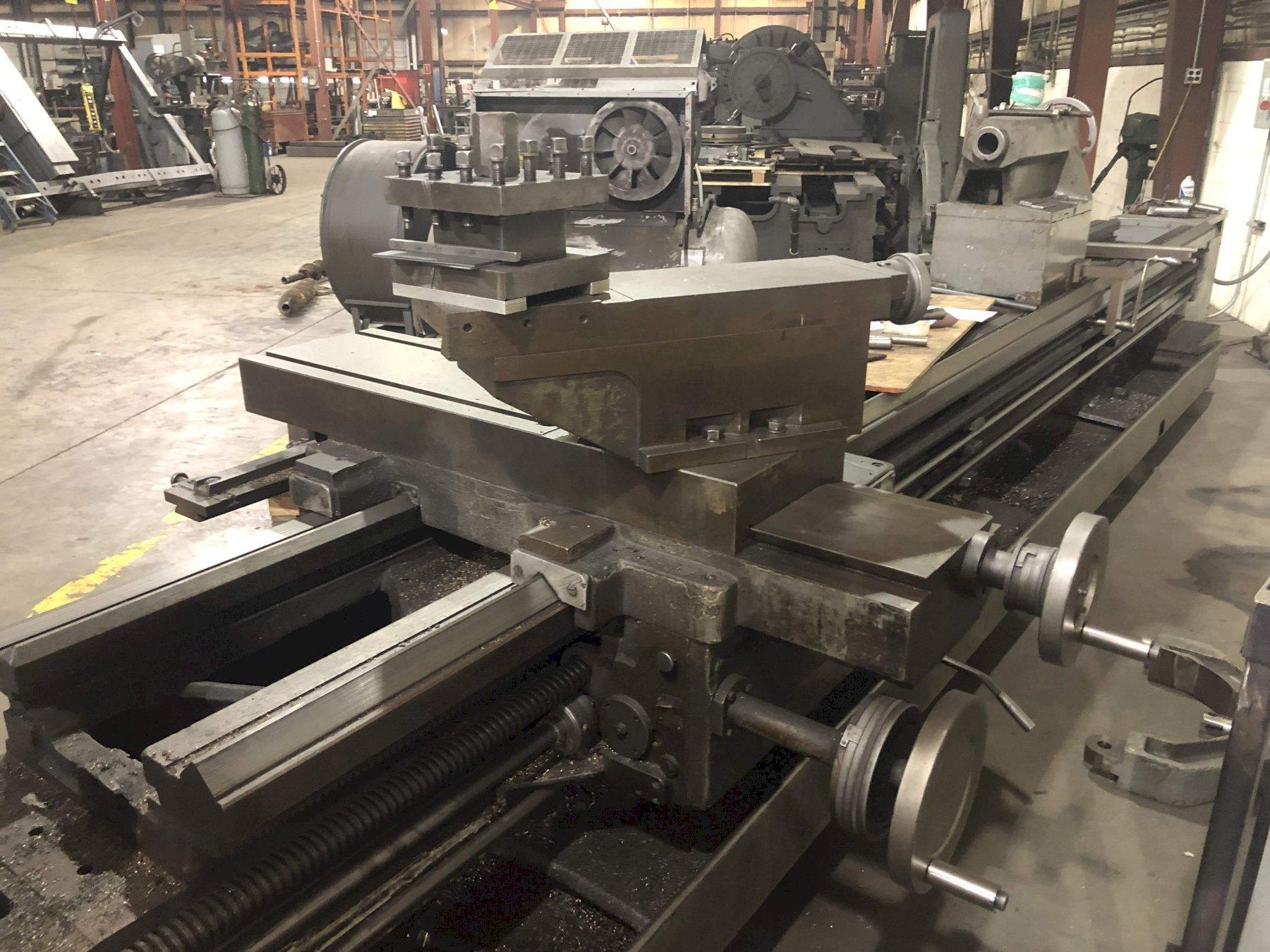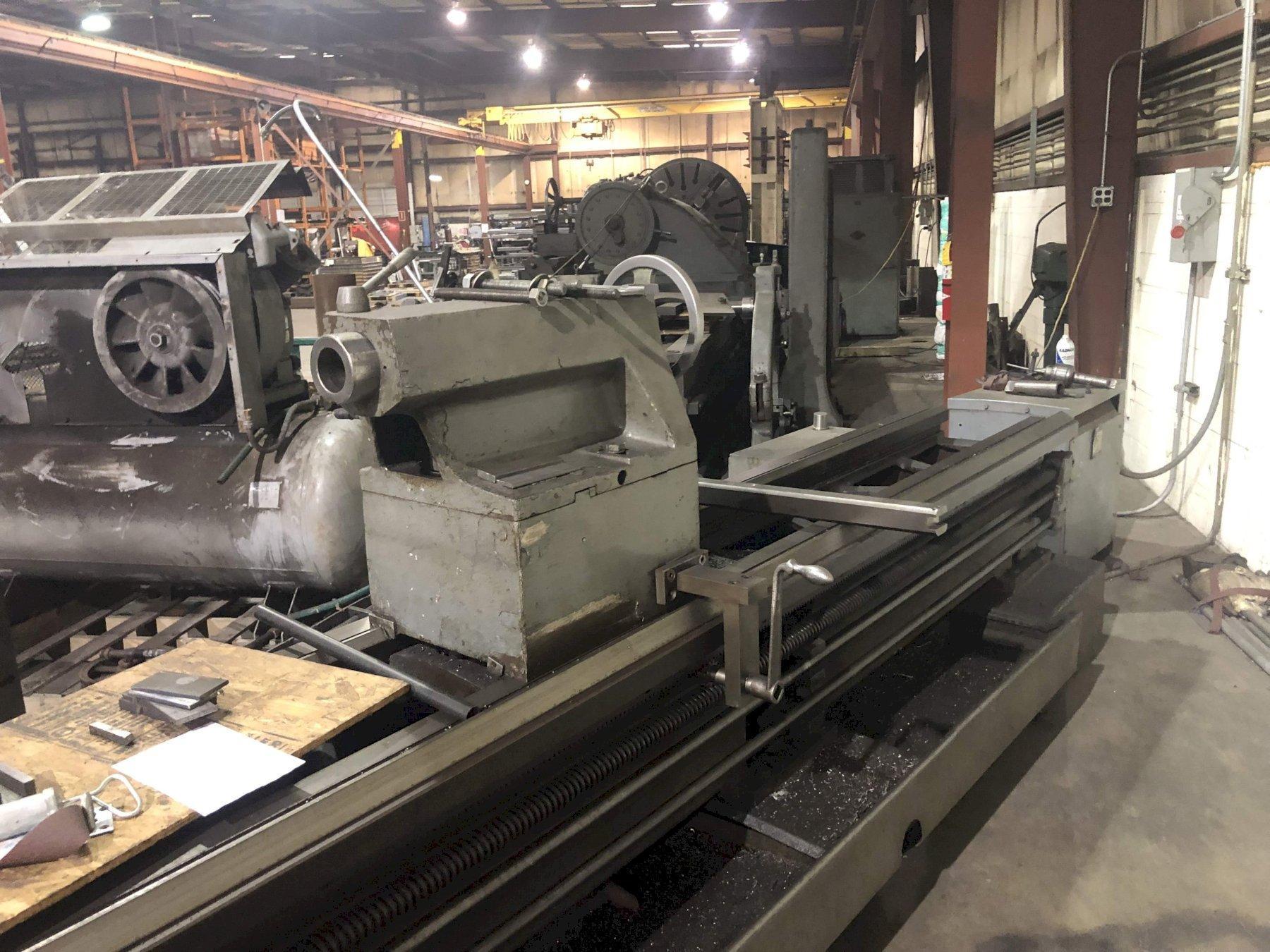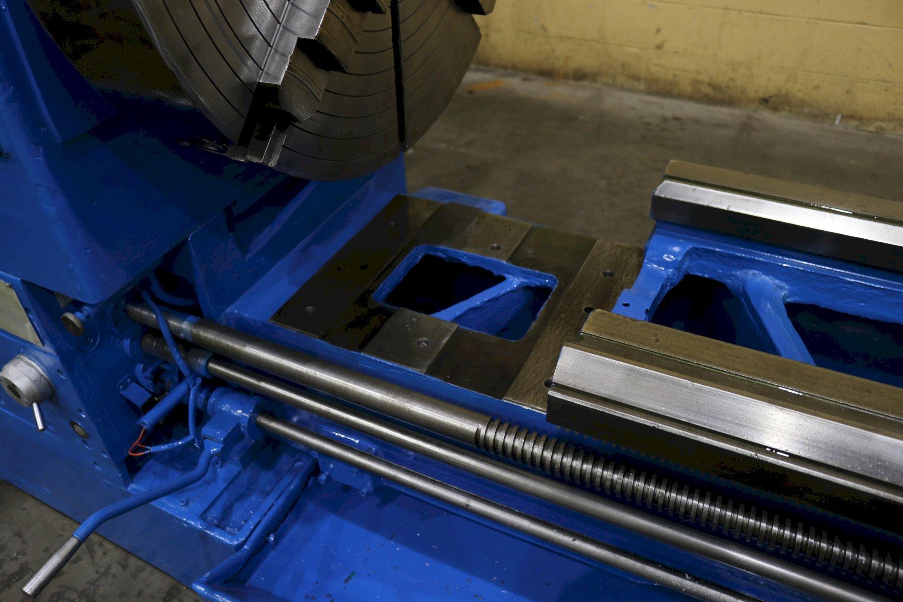 SWING OVER WAYS .................. 40" SWING IN GAP ..................... 50" SWING OVER CROSS SLIDE ........... 22" DISTANCE BETWEEN CENTERS ......... 16' SPINDLE SPEEDS ................... 8 TO 1250 RPM CHUCK ............................ 32" 4 JAW SPINDLE HOLE ..................... 3" TAPER ATTACHMENT ................. YES FULL LENGTH CHIP PAN ............. YES |