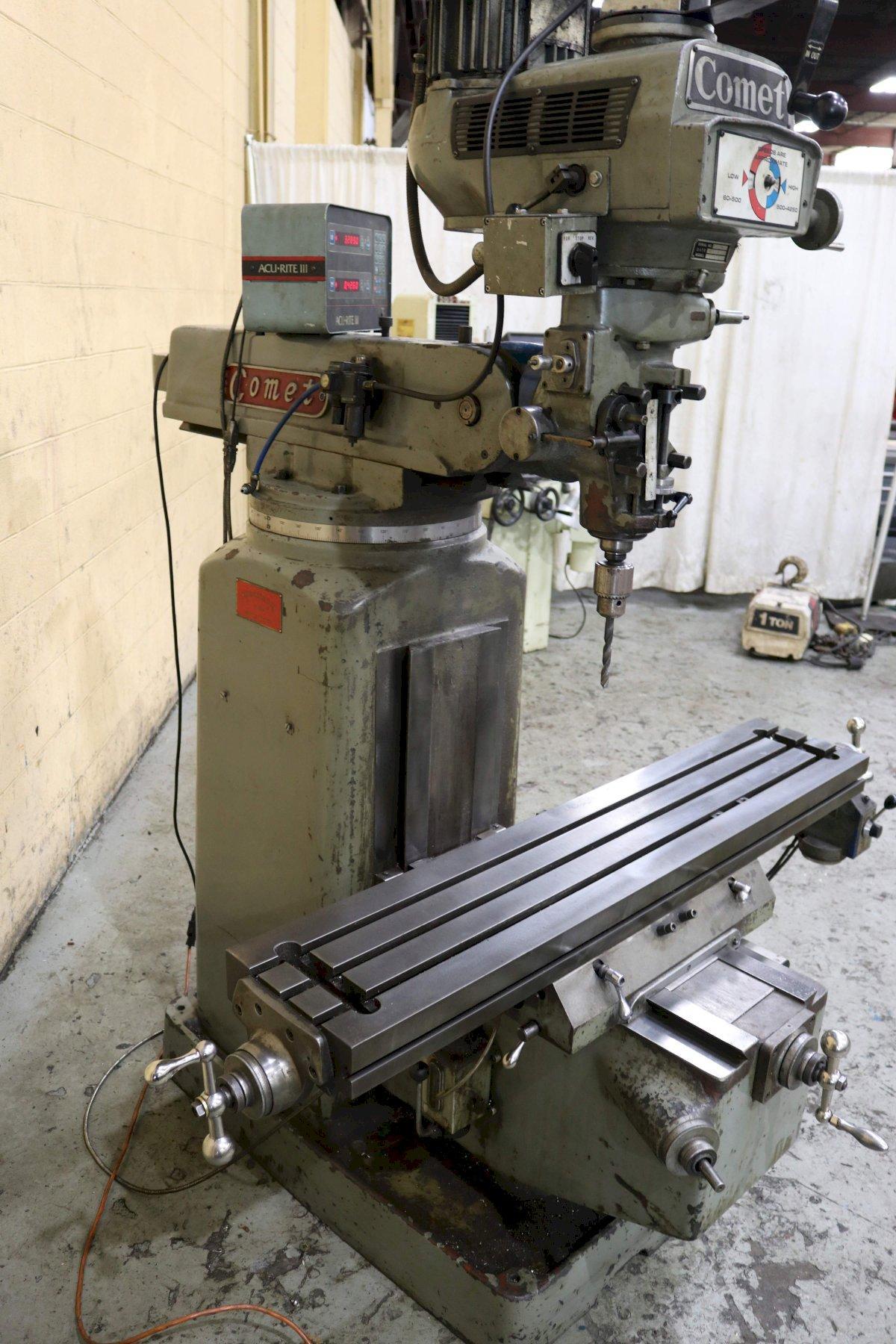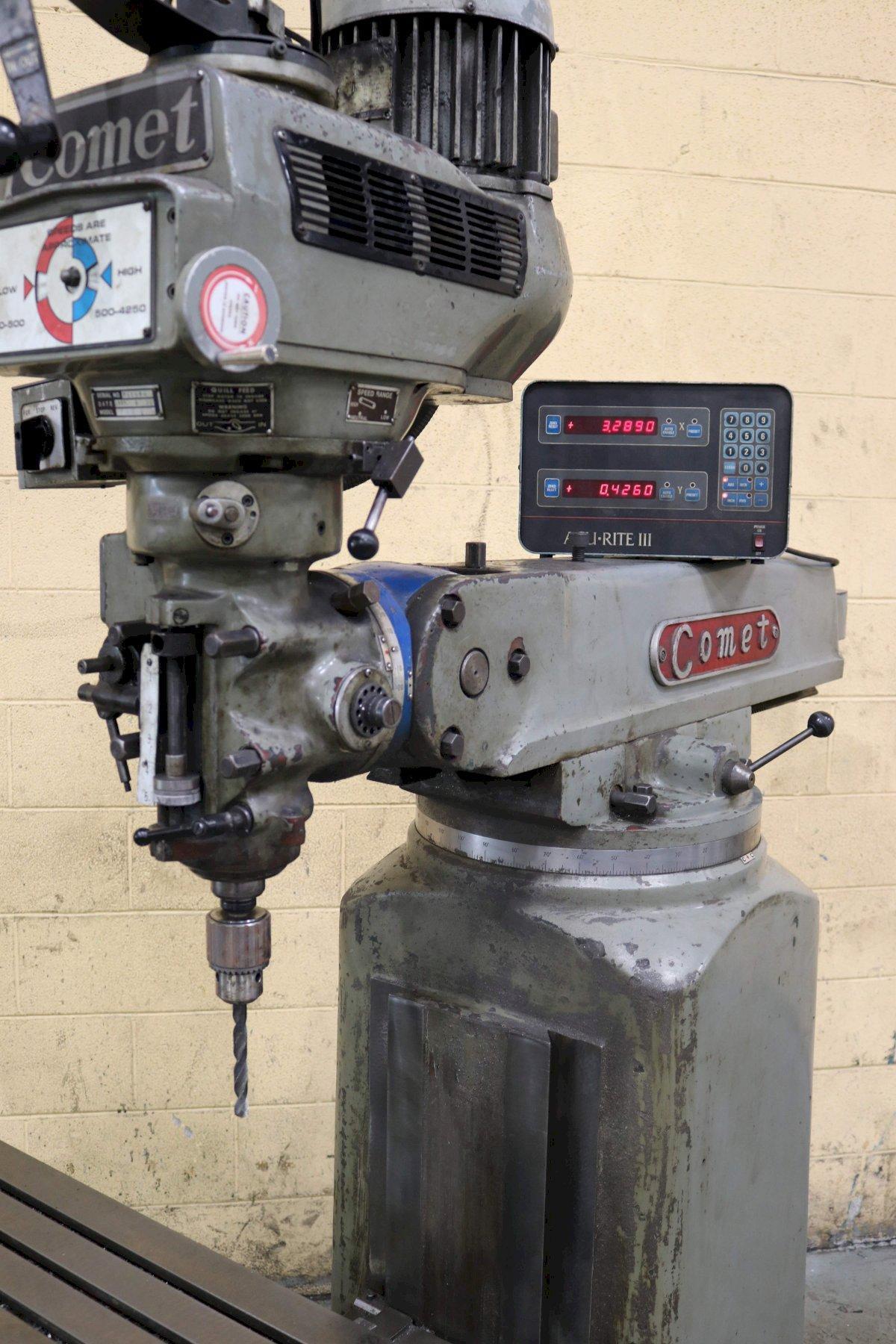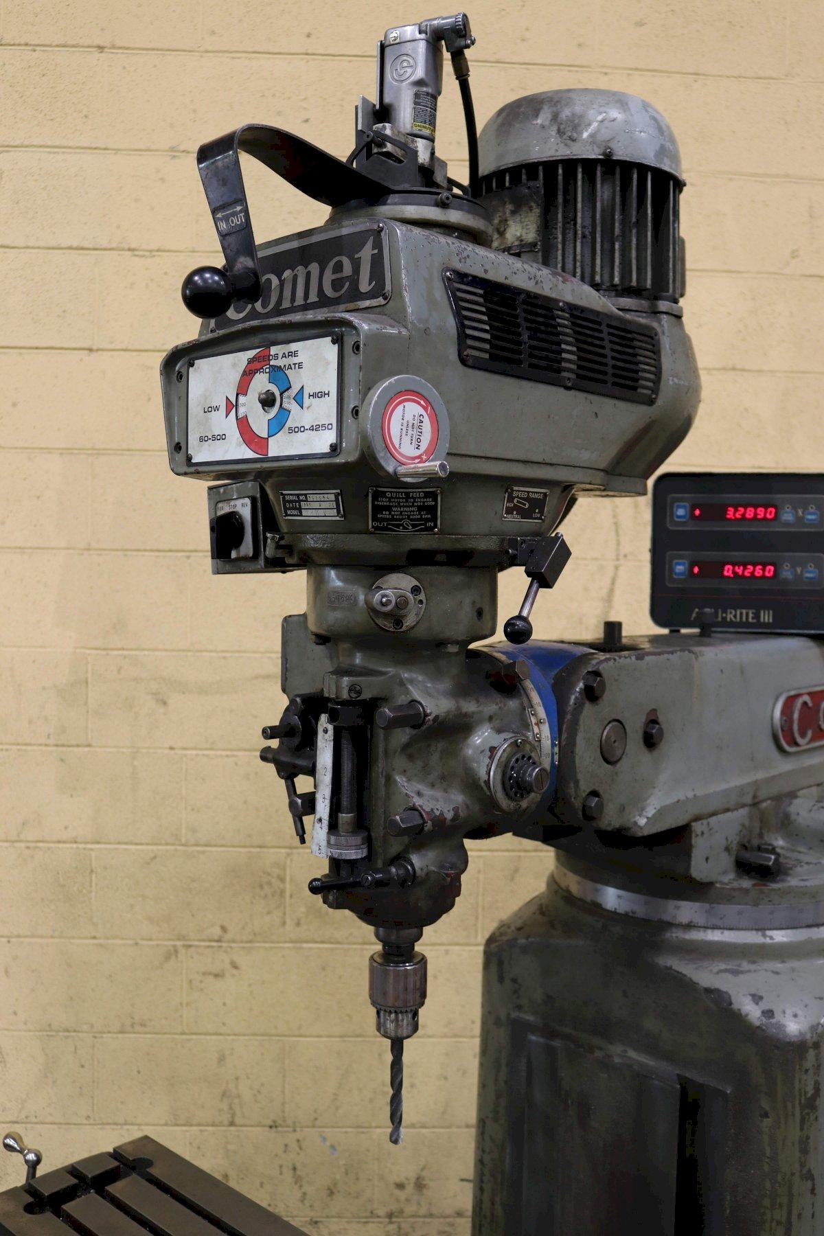 SERIAL .......................... 851594 MODEL ........................... 3KV SIZE OF TABLE ................... 10" X 50" SPINDLE SPEEDS .................. 60 TO 4250 RPM LONGITUDINAL TABLE TRAVEL ....... 32" CROSS TABLE TRAVEL .............. 16" VERTICAL KNEE TRAVEL ............ 16" SPINDLE TRAVEL .................. 5" QUILL FEEDS ..................... .0015, .003, .006 IPR POWER FEED TO TABLE ............. YES POWER DRAW BAR .................. YES DIGITAL READOUTS ................ YES MAIN MOTOR ...................... 3 HORSEPOWER |