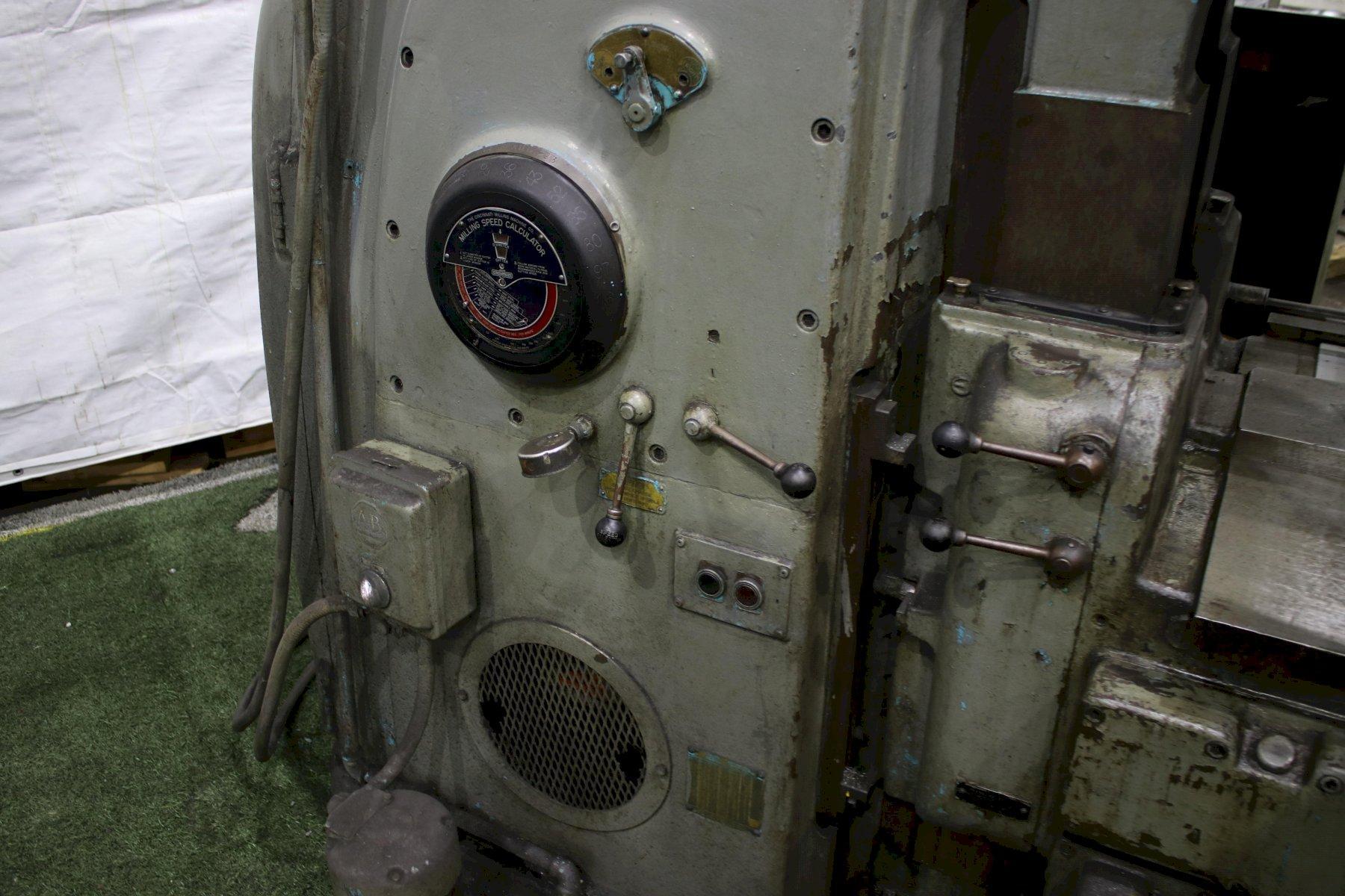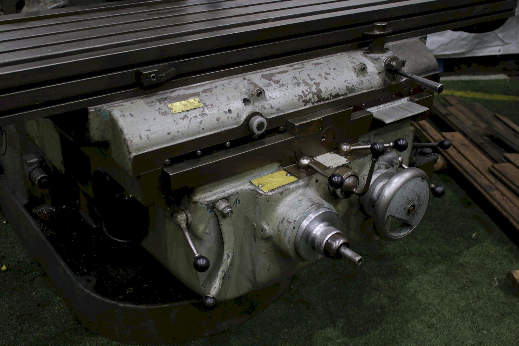 SERIAL ........................ 3J4V1Z-6 MODEL ......................... #4 AREA OF TABLE ................. 18" X 80" SPINDLE SPEEDS ................ 16 TO 1600 RPM LONGITUDINAL AND CROSS FEEDS .. 32 TO 90 IPM VERTICAL KNEE FEEDS ........... 3/32 TO 30 IPM VERTICAL HEAD FEEDS ........... 3/16 TO 45 IPM LONGITUDIANL TRAVEL ........... 42" CROSS TRAVEL .................. 16" VERTICAL KNEE TRAVEL .......... 16" VERTICAL HEAD TRAVEL .......... 7" TAPER IN SPINDLE .............. 50 NS MAIM MOTOR .................... 20 HORSEPOWER |