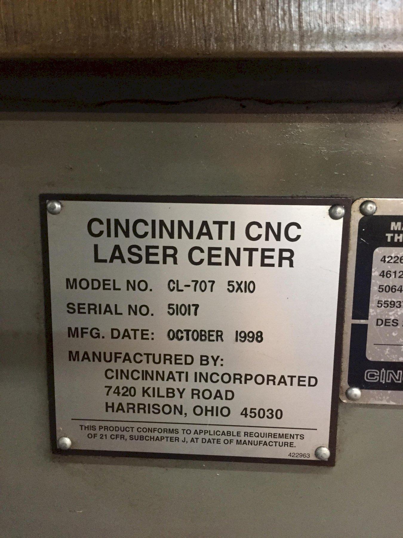 SERIAL ............................ 51017 MODEL ............................. CL-707-5X10 YEAR .............................. 1998 CAPACITY .......................... 2500 WATT CAPACITY (MILD STEEL) ............. 5/8" CAPACITY (STAINLESS STEEL) ........ 1/4" SHEET SIZE ........................ 5' X 10' POWER SUPPLY ...................... ROFIN MODEL DC025 ELECTRICAL: MOTOR ............................. 450V / 3PH /60HZ FULL LOAD ......................... 111 AMPS LARGEST MOTOR RATING .............. 3.8 AMPS INTERRUPTING CAPACITY ............. 14,000 AMPS KOOLANT KOOLER SERIAL ............................ 12741 MODEL ............................. HCV 15,000-PR-NF-FILT-H COMPRESSOR ........................ 15 HP PUMP .............................. 2 HP AND 2 HP |