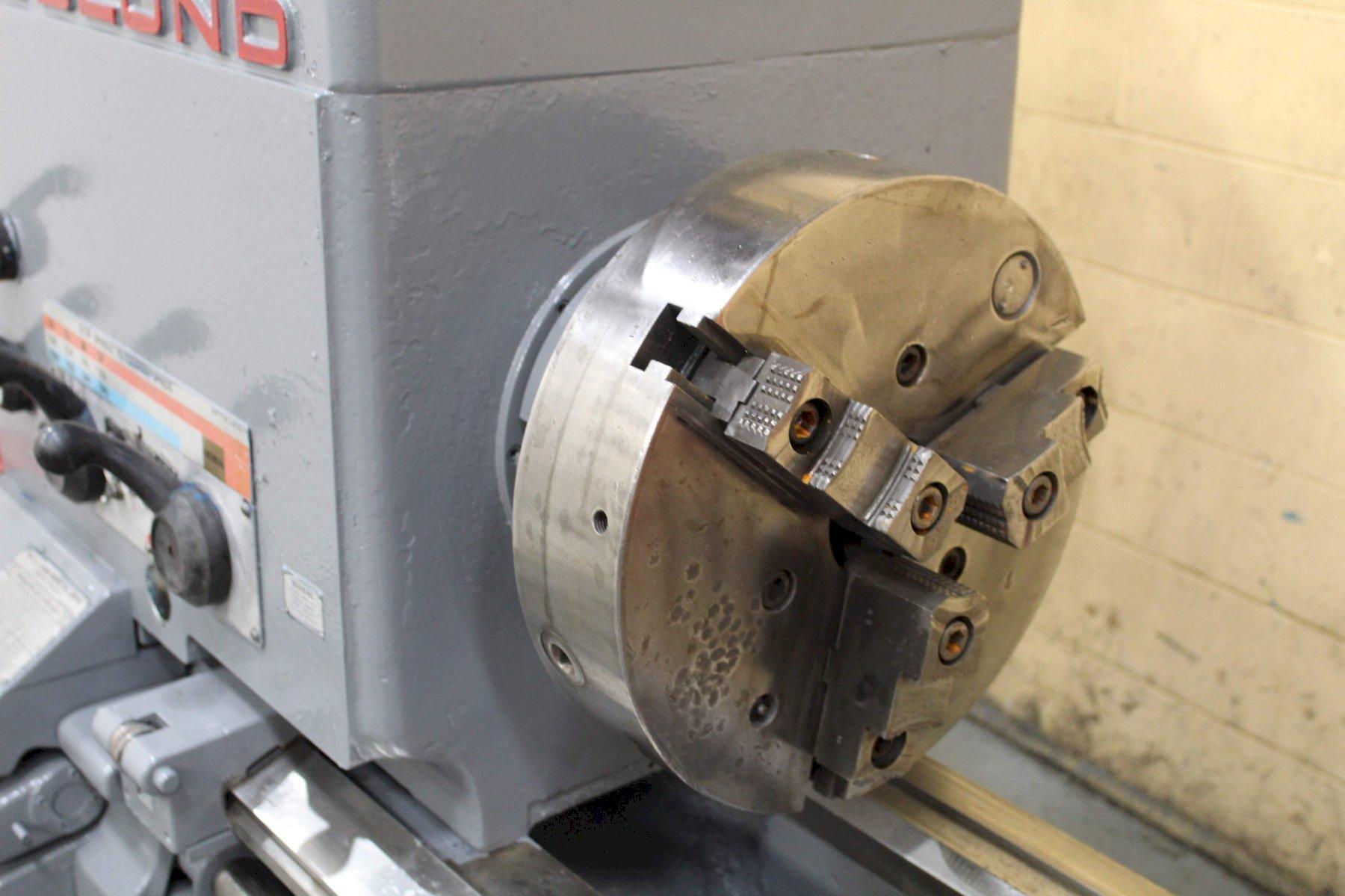 SERIAL ........................... 3F-716 SWING OVER BED ................... 22" SWING OVER CROSS SLIDE ........... 14-1/2" DISTANCE BETWEEN CENTERS ......... 72" HOLE THRU SPINDLE ................ 2" SPINDLE SPEEDS ................... 27 TO 1080 RPM FEEDS ............................ .0003 TO .205 IPR THREADS .......................... 2 TO 112 TPI CHUCK ............................ 15" 3-JAW CHUCK TAPER ATTACHMENT ................. YES HARDENED REPLACEABLE WAYS ........ YES TREAD DIAL ....................... YES SPINDLE MOTOR .................... 10 HORSEPOWER |
