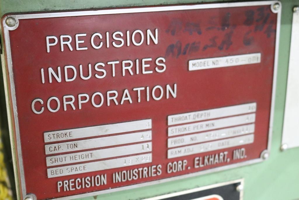 SERIAL ............................... 456-PNO118 MODEL ................................ 45G-OBI YEAR NEW ............................. 1998 CAPACITY ............................. 45 TONS STROKE ............................... 3" SHUT HEIGHT .......................... 11" STROKES PER MINUTE ................... 48 SLIDE ADJUSTMENT ..................... 2-1/2" SLIDE AREA ........................... 14" FB X 18" LR BED AREA ............................. 28" FB X 18" LR BOLSTER PLATE T SLOTTED .............. 28" X 18" X 2-1/4" DISTANCE BETWEEN UPRIGHTS ............ 13" THROAT ............................... 10" AIR CLUTCH AND BRAKE ................. YES CENTRAL LUBE ......................... YES INCH, SINGLE & CONTINUOUS ............. YES MOTOR ................................ 5 HORSEPOWER |
