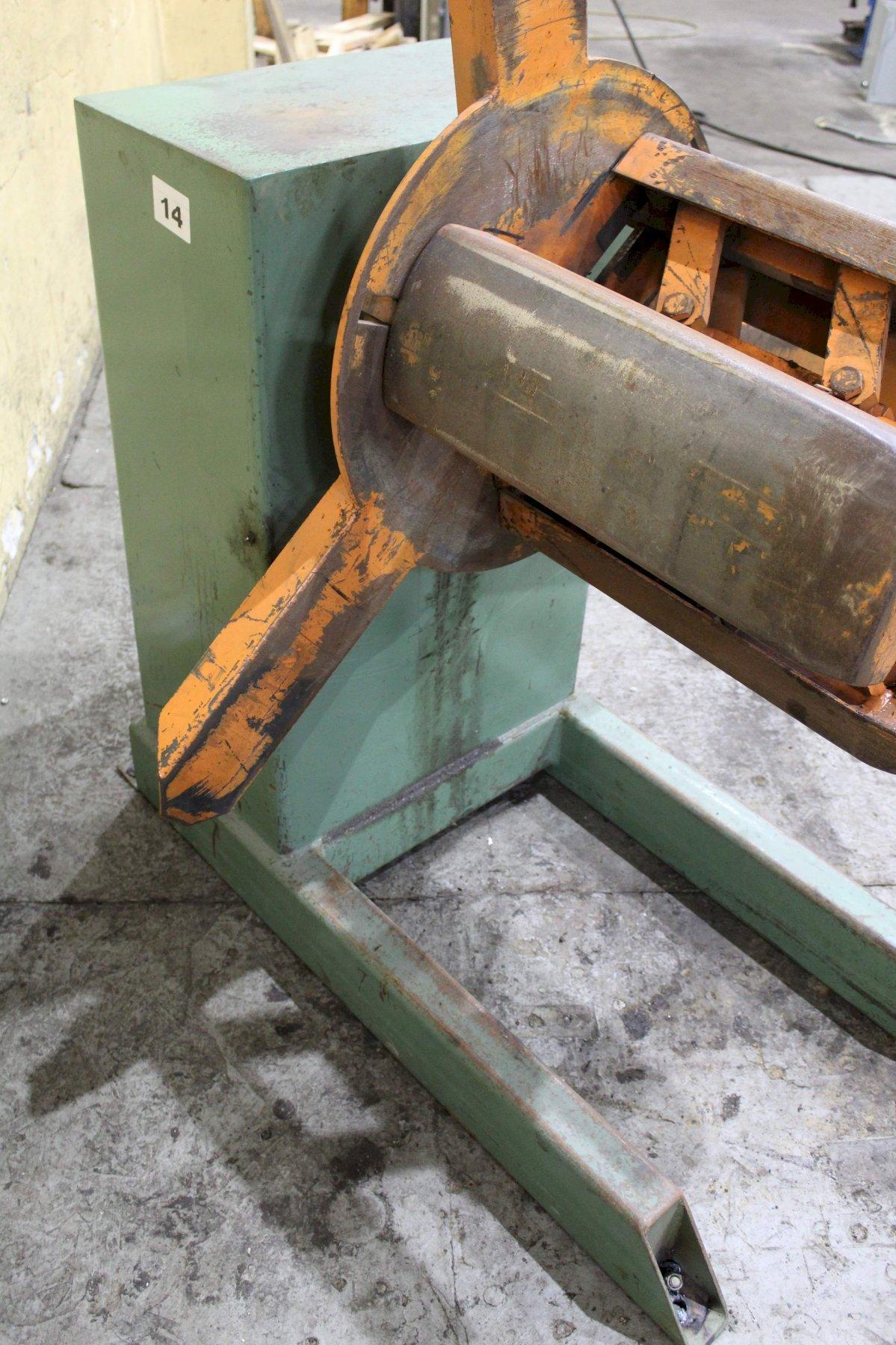SERIAL ....................... 9387/696 MODEL ........................ #60 YEAR NEW ..................... 1996 COIL CAPACITY ................ 1000 LBS. COIL WIDTH ................... 18" COIL I.D. RANGE .............. 14" TO 21" MAXIMUM COIL O.D. ............ 54" ACTUAL ARM LENGTH ............ 20" NUMBER OF EXPANSION ARMS ..... 3 FLOOR TO COIL CENTER ......... 33" EXPANSION .................... MANUAL BRAKE ........................ BAND |
