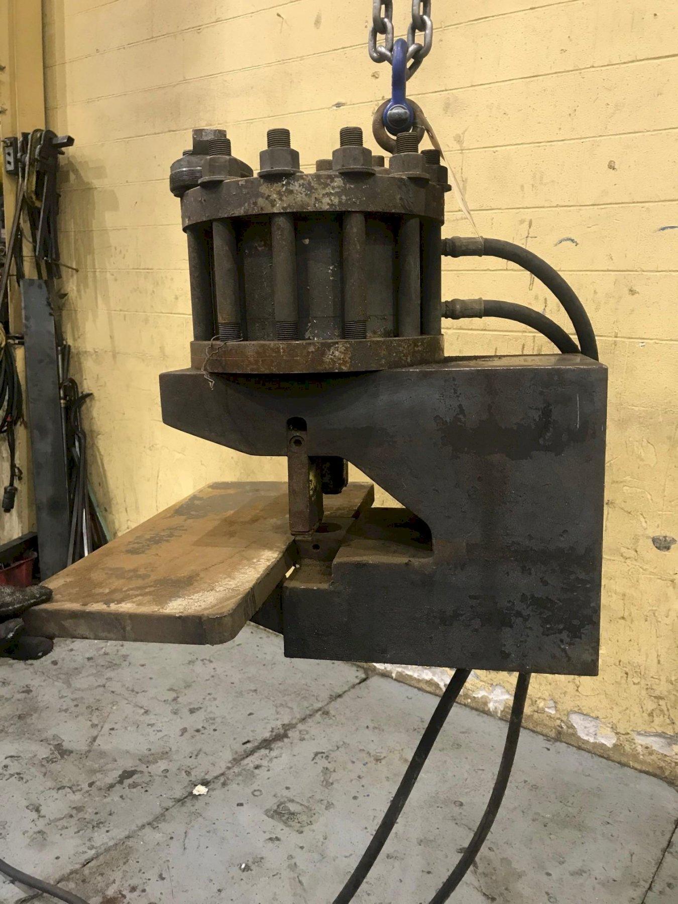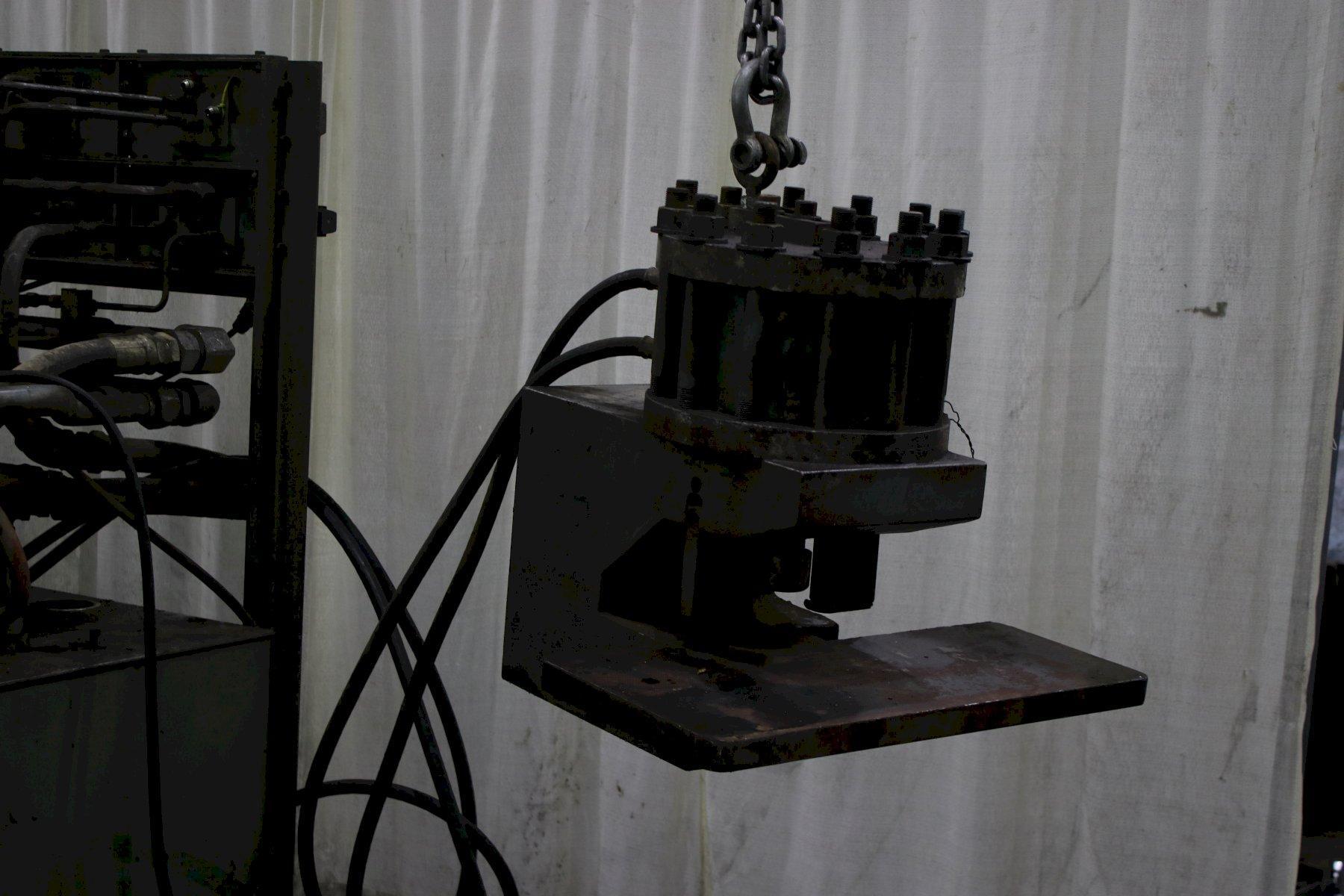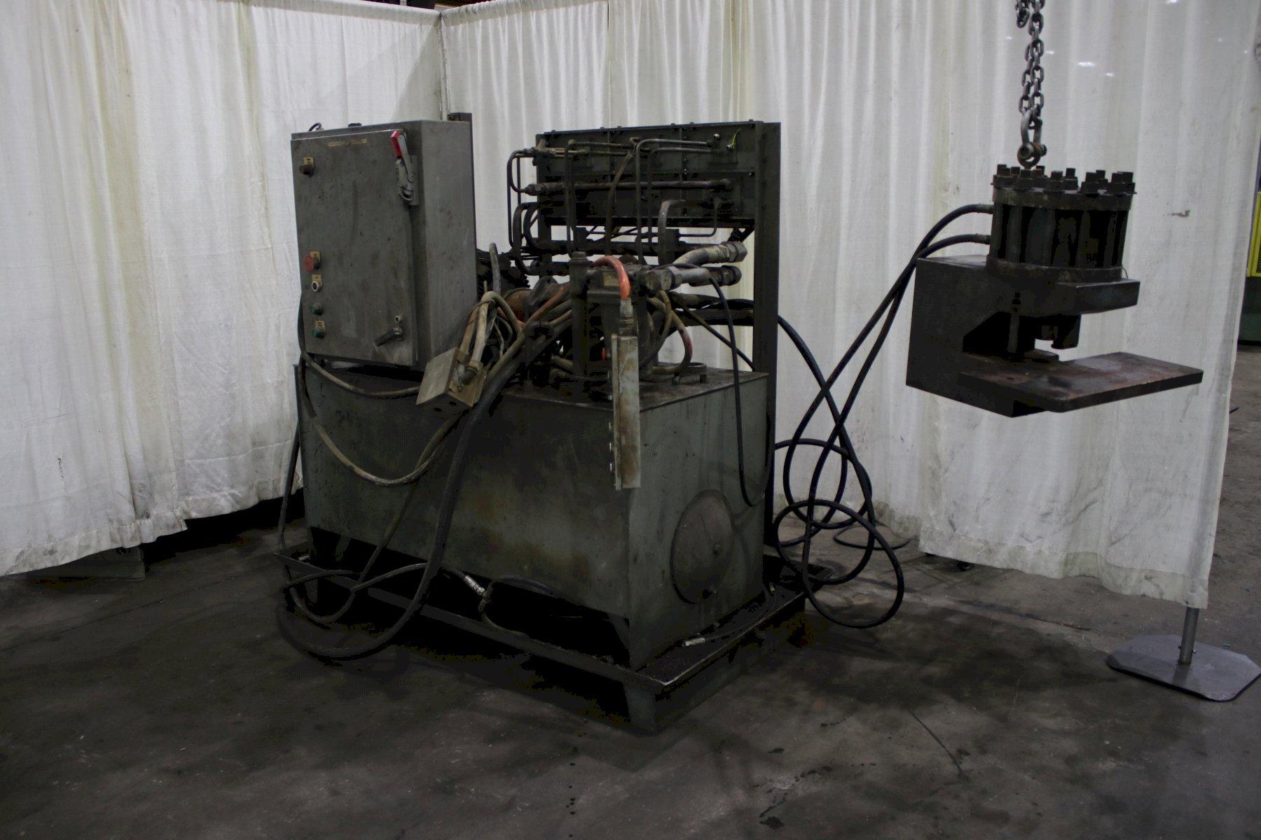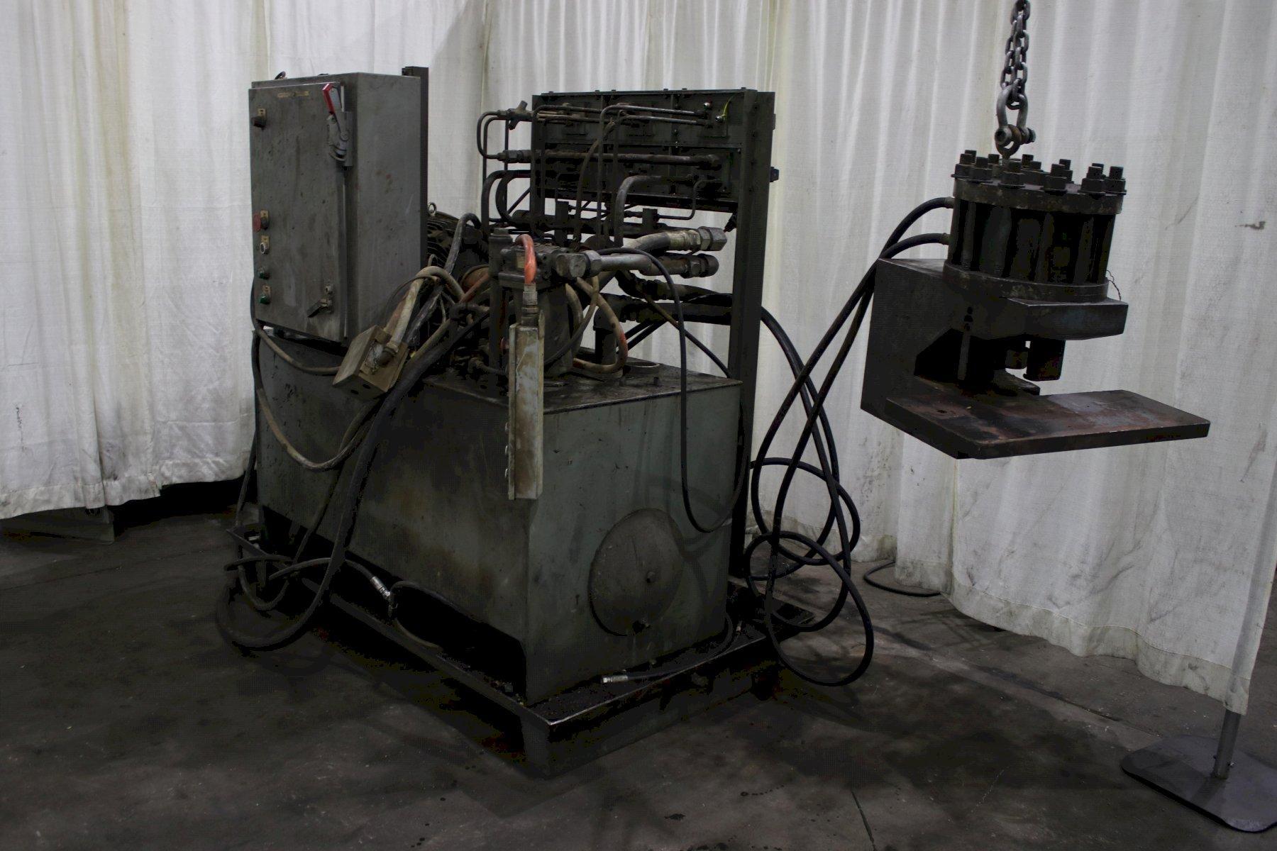 SERIAL ..................... 5300 MODEL ...................... 90F2000X60 CAPACITY ................... 200 TON STROKE ..................... 2" MAXIMUM HOLE DIAMETER ...... 2" MAXIMUM PLATE THICKNESS .... 1-3/8" DEPTH OF THROAT ............ 6-1/4" FLANGE STYLE ............... YES PRESS ...................... YES SLOW RETURN ................ YES FAST RETURN ................ YES PENDANT CONTROL ............ YES HYDRAULIC UNIT SERIAL ...... 01919-982 MODEL ...................... R75JRP150-15BB-45 HORSEPOWER ................. 25 |