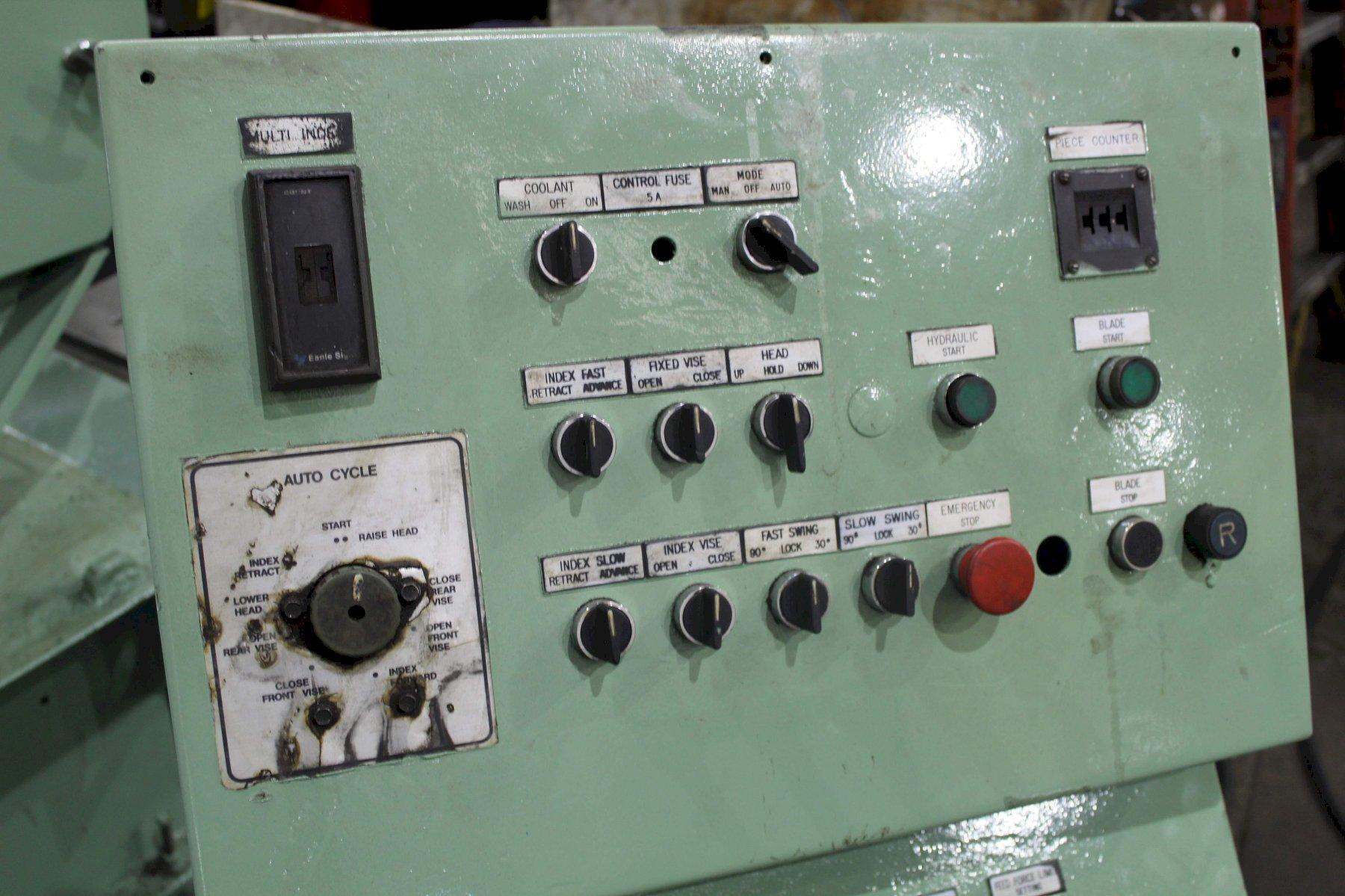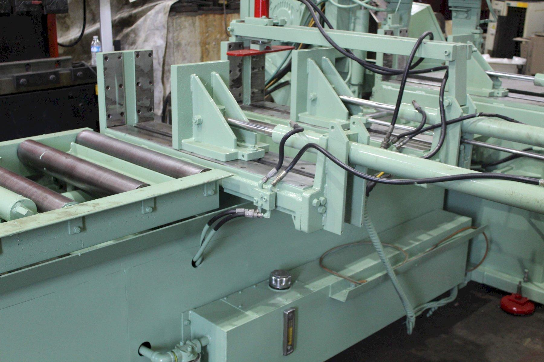 MODEL .............................. S-25A YEAR OF MANUFACTURE................. 1989 SERIAL NUMBER ...................... 91189173 ROUND CAPACITY ..................... 18" DIAMETER RECTANGULAR CAPACITY ............... 18" X 27" CAPACITY @ 45 DEGREE ANGLE ......... 18" CAPACITY @ 30 DEGREE ANGLE ......... 12" DIAMETER BLADE WIDTH ........................ 1.5" BLADE LENGTH ....................... 18'10" BLADE SPEED ........................ 75 TO 400 SFM BLADE TENSION ...................... HYDRAULIC POWER MITERING ..................... YES AUTO CYCLE ......................... YES NESTING ............................ YES AUTOMATIC FEED STROKE .............. 0" TO 40" SINGLE STROKE NUMBER OF STROKES .................. 1 TO 99 HYDRAULIC DRIVE MOTOR .............. 3 HORSEPOWER BLADE MOTOR ........................ 10 HORSEPOWER |