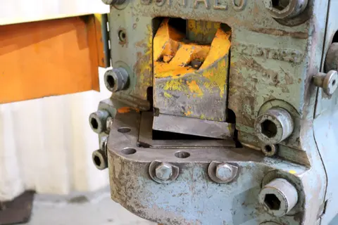 SERIAL ....................................... 87500768 MODEL ........................................ #1-1/2C YEAR NEW ..................................... 1987 PUNCHING CAPACITY ............................ 65 TON PUNCH DIAMETER THROUGH PLATE THICKNESS ....... 1-1/6" X 3/4" DEPTH OF THROAT .............................. 22-1/2" SHEARING CAPACITIES ANGLES AT 90 DEGREE ...... 5" X 5" X 1/2" SHEARING CAPACITY ANGLES AT 45 DEGREE ........ 4" X 4" X 1/2" ROUNDS ....................................... 1-3/4" SQUARES ...................................... 2" PLATE ........................................ 3/4" X 9-1/4",1/4" X 11" LENGTH OF PLATE SHEAR BLADE .................. 12" NOTCHER ON PUNCH END ......................... 2-3/4" X 1-3/4" X 3/8" COPER ON SHEAR END ........................... 2" X 3" X 1/2" STROKES PER MINUTE ........................... 44 AIR OPERATED FOOT TRIP (ONE FOR EACH END) .... YES TOOLING ...................................... PUNCH DIES HORSEPOWER MAIN DRIVE MOTOR .................. 3 |