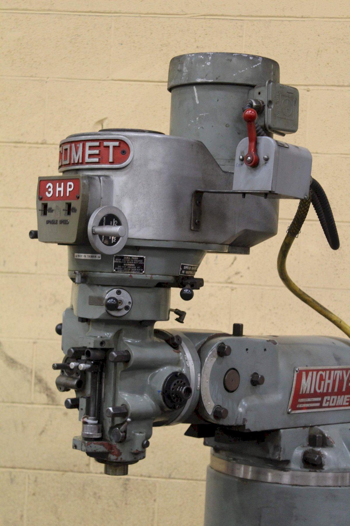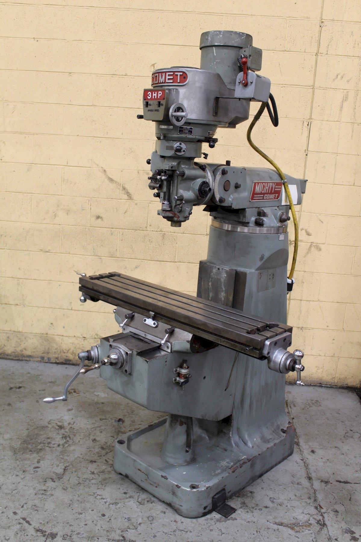 SERIAL ................................... 64520 MODEL .................................... 3-VHG YEAR NEW ................................. 1994 AREA OF TABLE ............................ 9" X 42" LONGITUDINAL TABLE TRAVEL ................ 30" CROSS TABLE TRAVEL ....................... 16" VERTICAL KNEE TRAVEL ..................... 16" QUILL TRAVEL ............................. 5" RAM TRAVEL IN/OUT ........................ 24" SPINDLE SPEEDS VARIABLE SPEED ............ 60 TO 4,200 RPM SPINDLE TAPER ............................ R-8 POWER QUILL FEEDS ........................ 0015, .003 & .006 IPR DISTANCE, SPINDLE NOSE TO TABLE .......... 2" MINIMUM 18" MAXIMUM DISTANCE SPINDLE CENTERLINE OF COLUMN .... 4" MINIMUM 28" MAXIMUM HEAD TILTS ............................... 45 DEGREES (BACK & FORWARD) HEAD ROTATES ............................. 90 DEGREES (RIGHT & LEFT) MOTOR .................................... 3 HORSEPOWER |