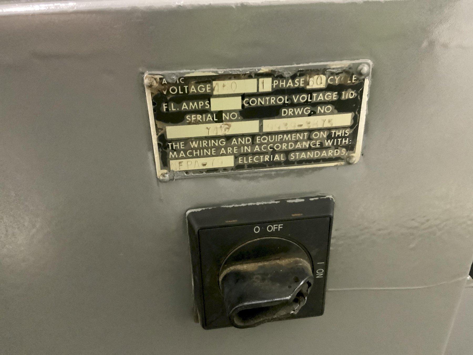 SERIAL ...................... 744 MODEL ....................... FT200-A-R CAPACITY .................... 200,000 LB DIAMETER OF TABLE ........... 72" HOLE IN CENTER OF TABLE ..... 12" FLOOR TO TOP OF TABLE ....... 37" TABLE SPEED ................. VARAIBLE FORWARD & REVERSING ......... YES PENDANT CONTROL ............. YES MOTOR ....................... 10 HORSEPOWER |