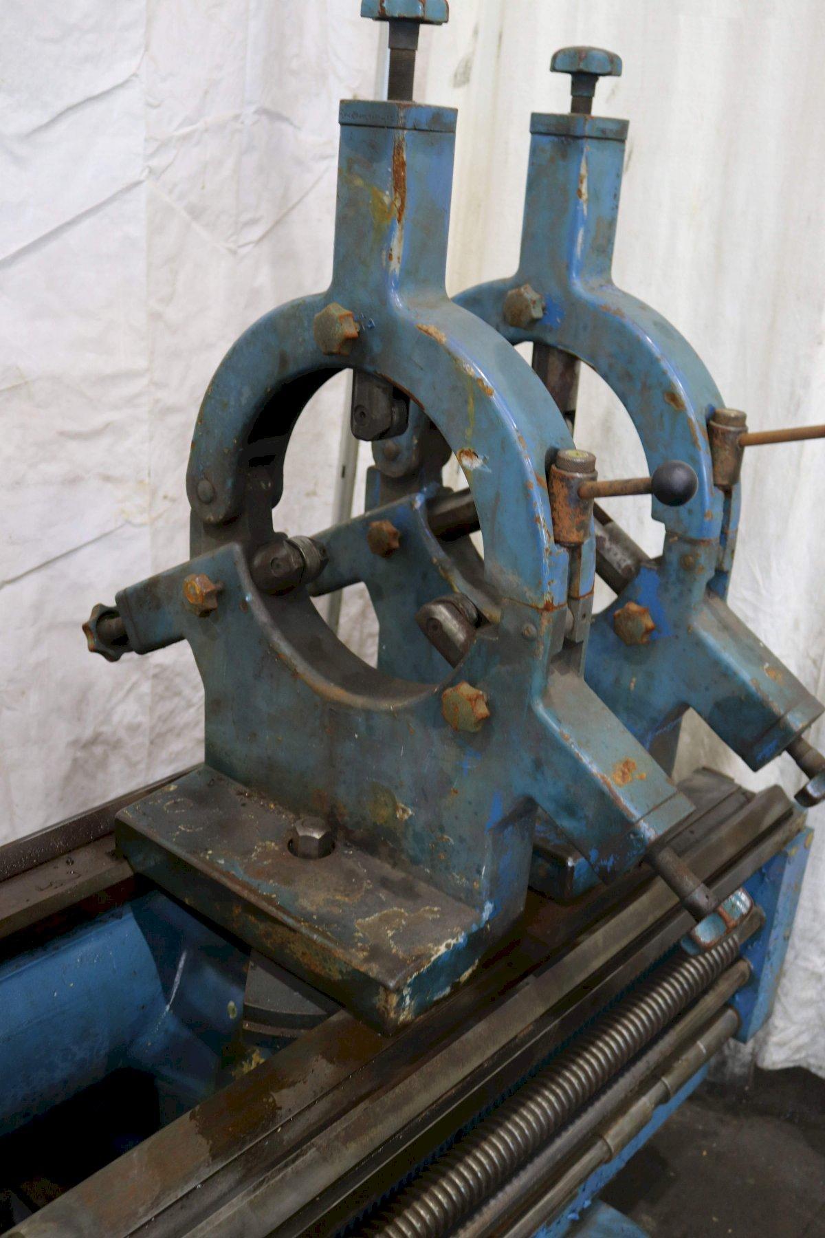 MODEL ............................ 840 SWING OVER WAYS .................. 33" SWING OVER CROSS SLIDE ........... 20" DISTANCE BETWEEN CENTERS ......... 168" SPINDLE SPEEDS ................... 7.1 TO 1400 RPM FEEDS ENGLISH .................... .0016 TO .1000 IPR THREADS ENGLISH .................. 1 TO 80 TPI METRIC THREADS ................... .025 O 89 MM PITCH DIAMETER OF SPINDLE HOLE ......... 5.12" HARD WAYS ........................ YES THREAD DIAL ...................... YES CHUCK 3 JAW ...................... 16" (2) STEADY REST ROLLER TYPE ...... 12-1/2" & 24-1/2" HOLES FOLLOW REST ...................... YES RAPID TRAVERSE ................... YES CHIP PANS ........................ YES MOTOR ............................ 25 HORSEPOWER |