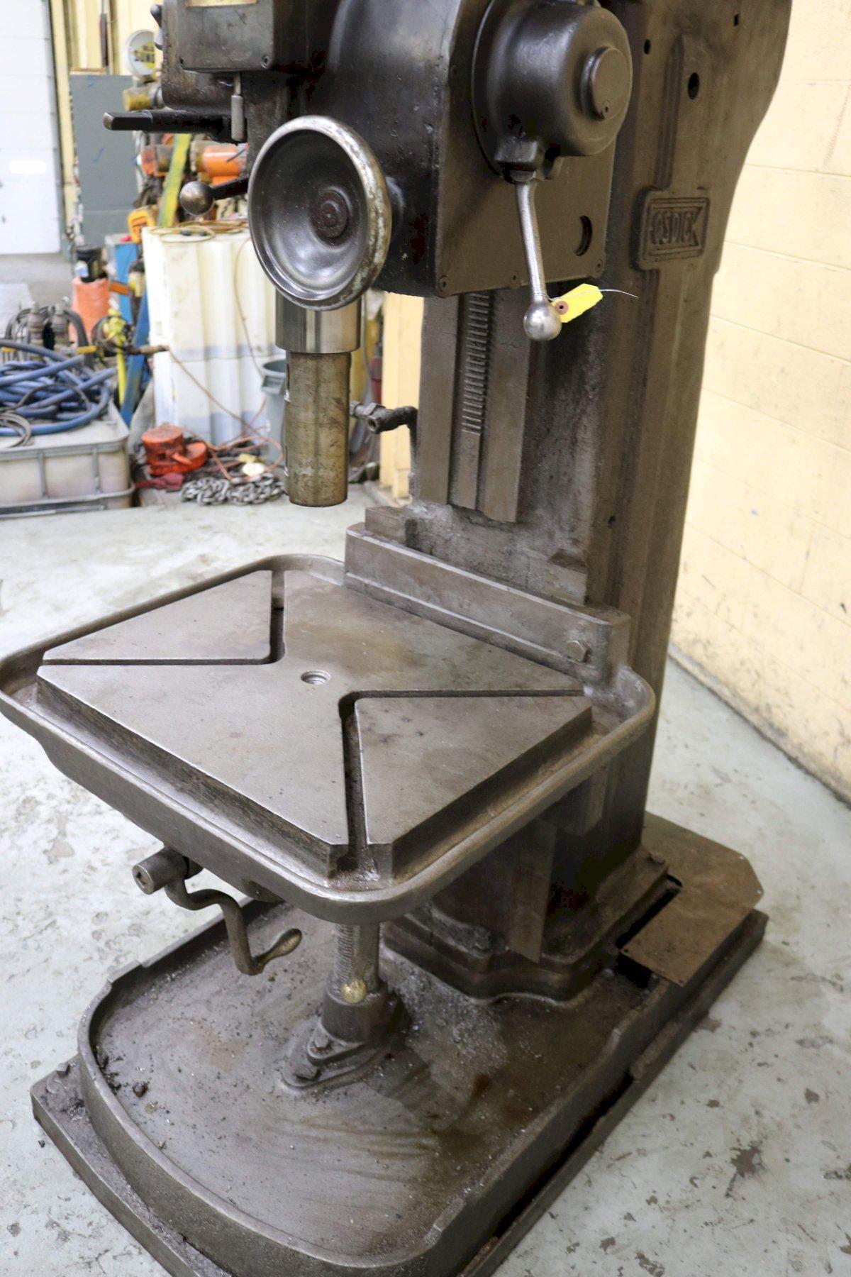 SERIAL ........................................ 17419 BOX COLUMN .................................... YES SPINDLE CENTER TO LOWER COLUMN ................ 12-1/2" SPINDLE CENTER TO UPPER COLUMN ................ 12" MAXIMUM DISTANCE SPINDLE TO TABLE ............. 34" AREA OF WORK TABLE ............................ 24" X 19" POWER FEED SPINDLE TRAVEL ..................... 12" VERTICAL TABLE TRAVEL ......................... 16" VERTICAL ADJUSTMENT OF SLIDING HEAD ........... 18" SPINDLE SPEEDS ................................ (12) 60-1500 RPM SPINDLE FEEDS ................................. (9) .005-.043 IPR SPINDLE TAPER ................................. #4 MT POWER DOWNFEED ................................ YES TAPPING ....................................... YES MOTOR ......................................... 5 HORSEPOWER |