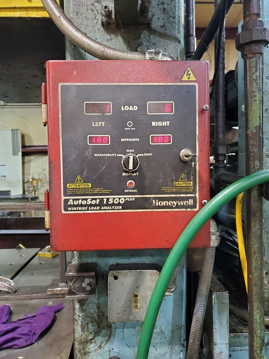 MODEL ................................ #300-48-102 CAPACITY ............................. 300 TON STROKE OF SLIDE ....................... 12" POWER SLIDE ADJUSTMENT ................ 6" SHUT HEIGHT, SDAU ..................... 24-1/4" AREA OF BED ........................... 102" X 48" AREA OF RAM T SLOTTED RAM ............. 102" X 48" WINDOWS ............................... 26" WIDE BOLSTER ............................... 102" X 48" X 6-1/4" STROKES PER MINUTE .................... 18 AIR CLUTCH & BRAKE .................... YES AIR COUNTER BALANCE ................... YES FLOOR STANDING ........................ YES BOLSTER PLATE ......................... T SLOTTED PALM BUTTONS .......................... DUAL PERFECTO SERVO FEEDER LENGTH .......... 15" WINTRESS LOAD ANALYZER ................ YES MOTOR ................................. 20 HORSEPOWER |