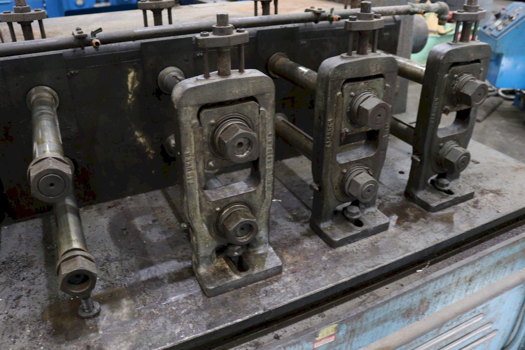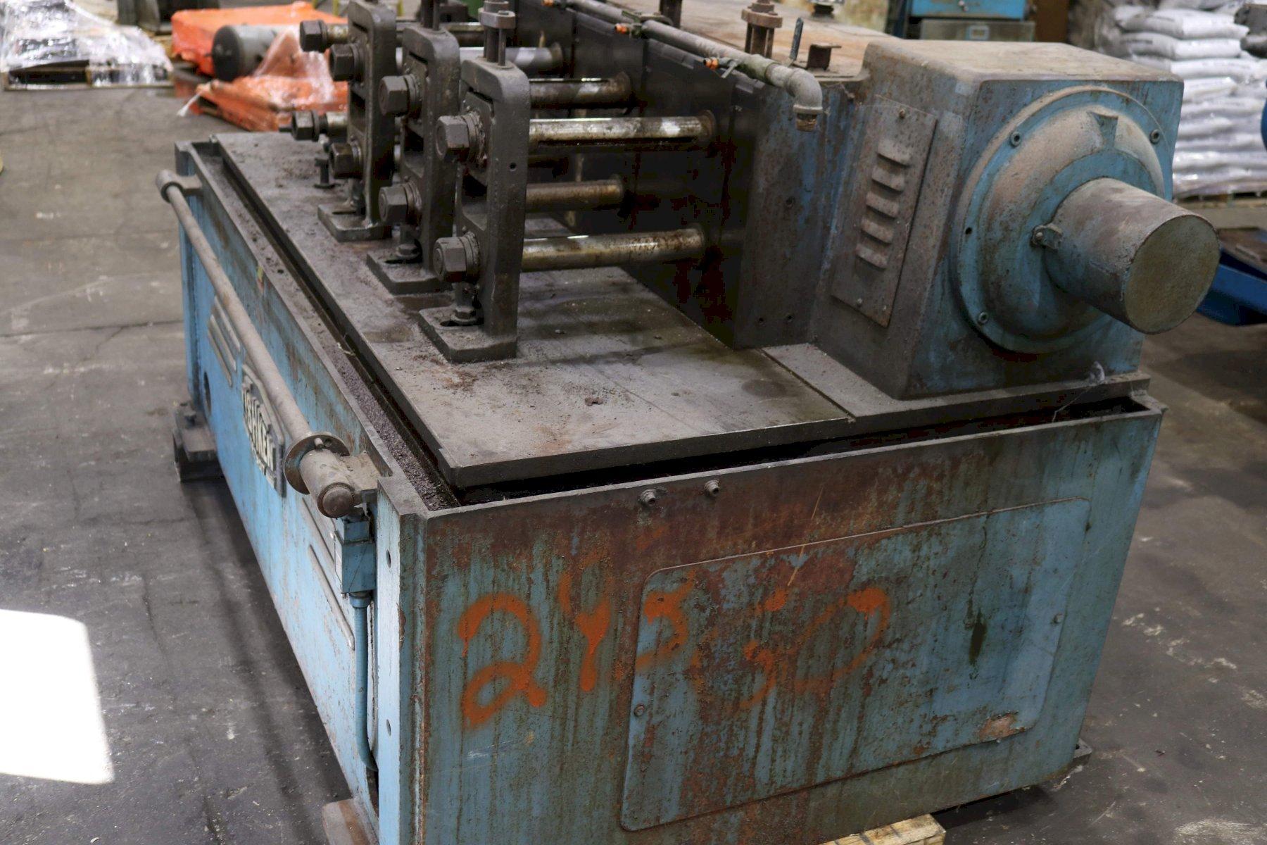TISHKEN FOUR STAND ROLL FORMER MODEL NUMBER .................... 4-MW-2 SERIAL NUMBER ................... 21094293 ARBOR DIAMETER .................. 2" ROLL SPACE ...................... 14" LOWER ARBOR FROM BASE TOP ....... 5" VERTICAL ADJUSTMENT ............. 3" ESTIMATED DC DRIVE .............. 20HP EQUIPPED WITH A 3 AXIS STRAIGHTENER YES MISSING ONE OUTBOARD SUPPORT |