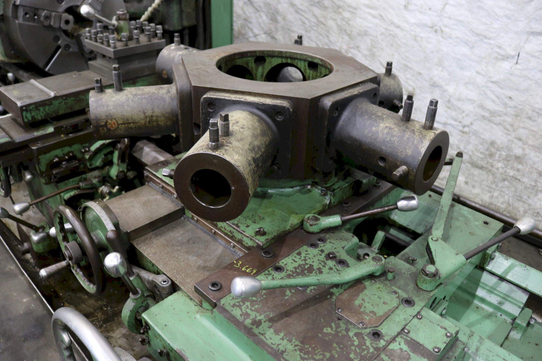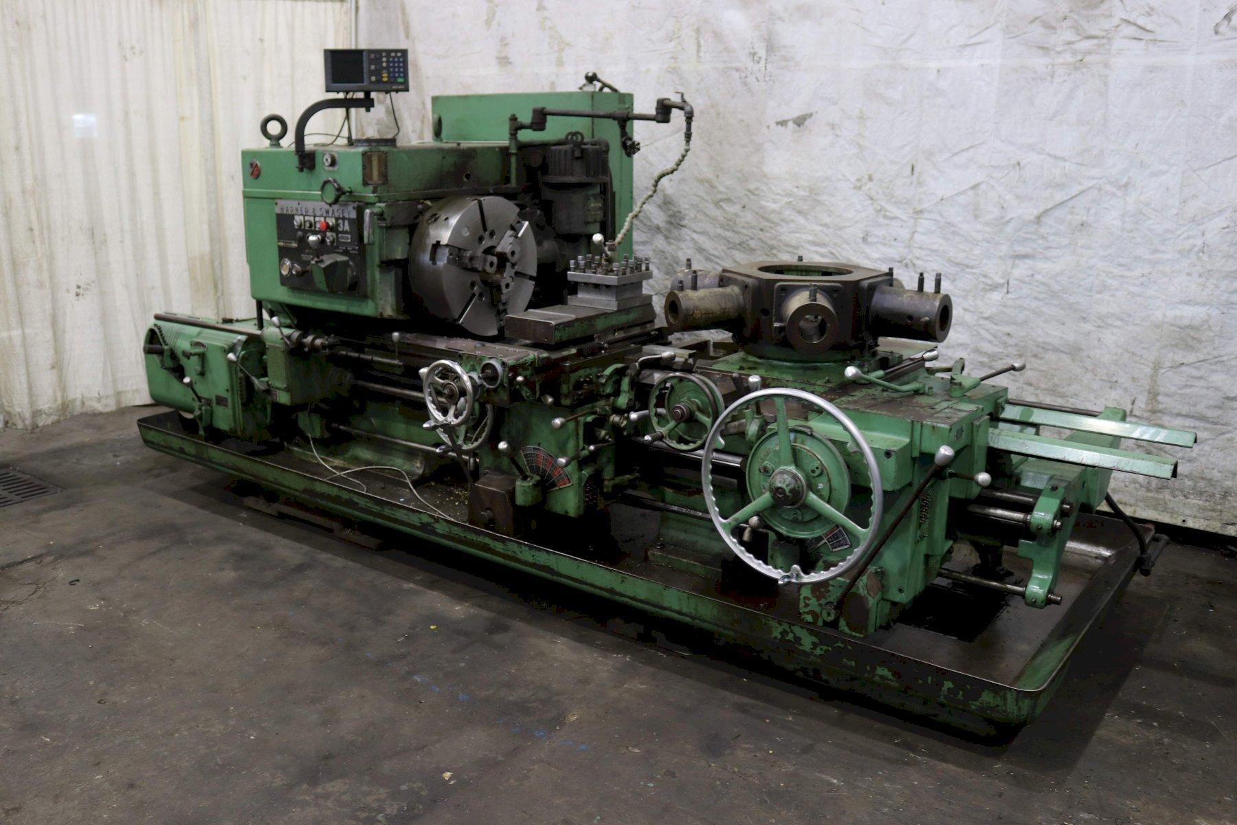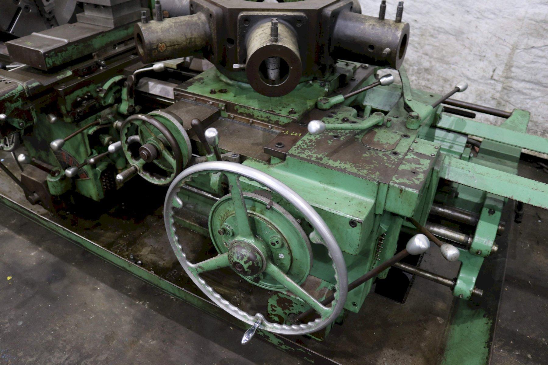 SERIAL ................................. 2796737 MODEL .................................. 3A (M-3500) SQUARE HEAD SWING OVER BED ......................... 24-1/2" SWING OVER CARRIAGE HORN ............... 18" SPINDLE NOSE TO TURRET ................. 58-3/4" SPINDLE HOLE ........................... 6-1/8" SPINDLE SPEEDS ......................... (32) 18 TO 639 RPM CHUCK WITH POWER WRENCH ................ 21" 3 JAW CARRIAGE LONGITUDINAL FEEDS ............ (16) .0029 TO .187 IPR CARRIAGE CROSS FEEDS ................... (16) .002 TO .082 IPR TURRET LONGITUDINAL FEEDS .............. (16) .005 TO .167 IPR TURRET CROSS FEEDS ..................... (16) .003 TO .096 IPR TAPER ATTACHMENT ON CROSS SLIDE ........ YES TAPER ATTACHMENT ON TURRET .............. YES **CROSS SLIDING TURRET** ............... YES ** COMPOUND CROSS SLIDE ** ............. POWERED FULL LENGTH THREADING .................. YES 3 AXIS DIGITAL READOUTS ................ ACCURITE CHIP PAN WITH COOLANT .................. YES MAIN MOTOR ............................. 40 HORSEPOWER |