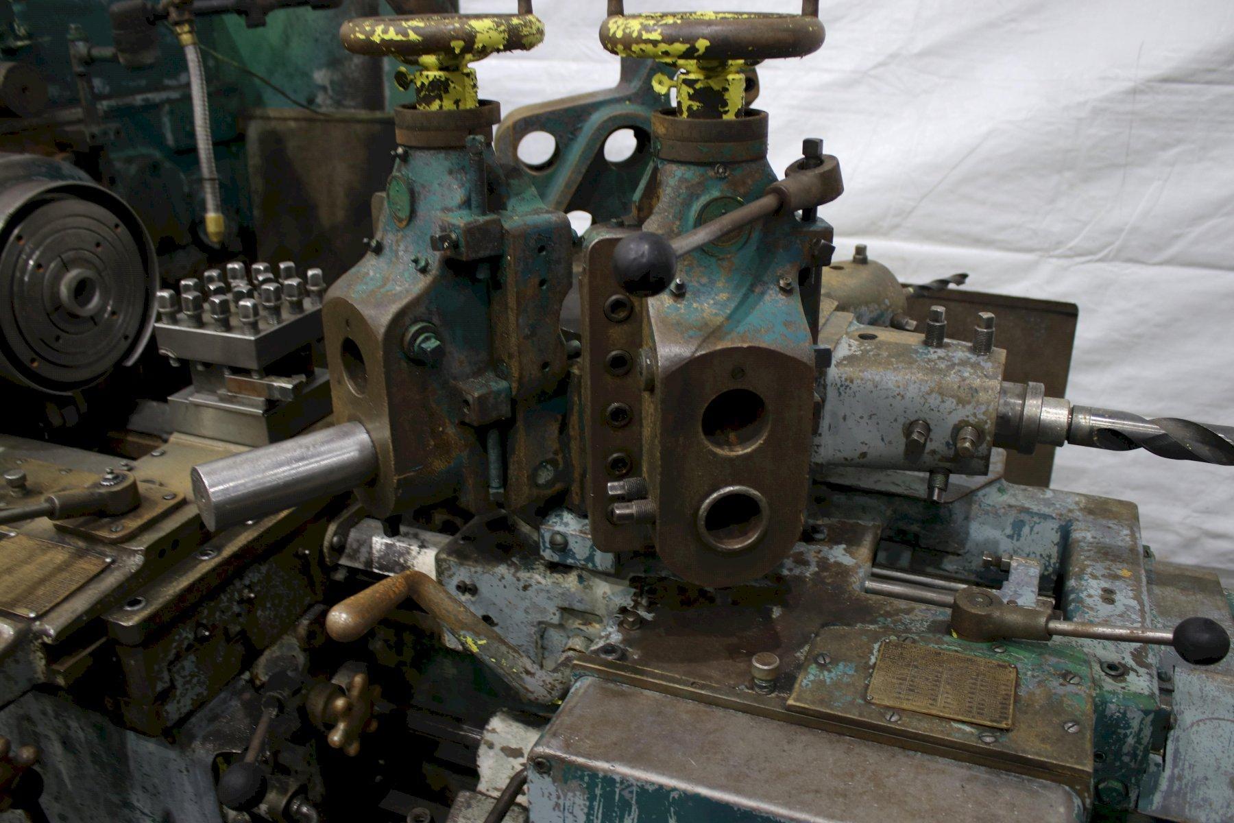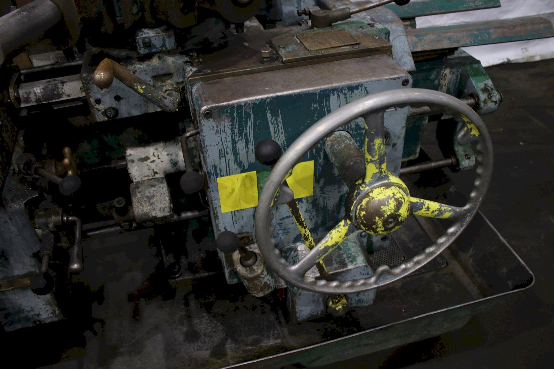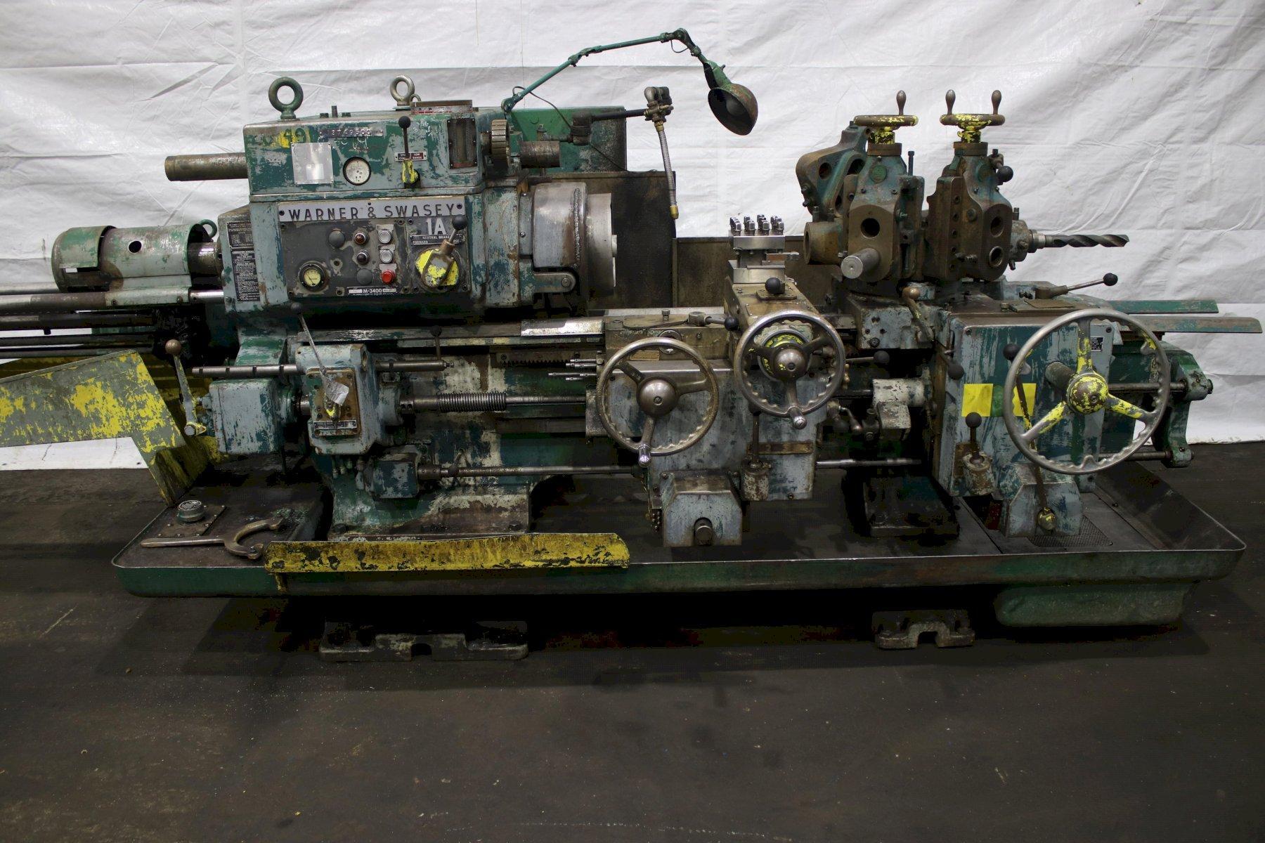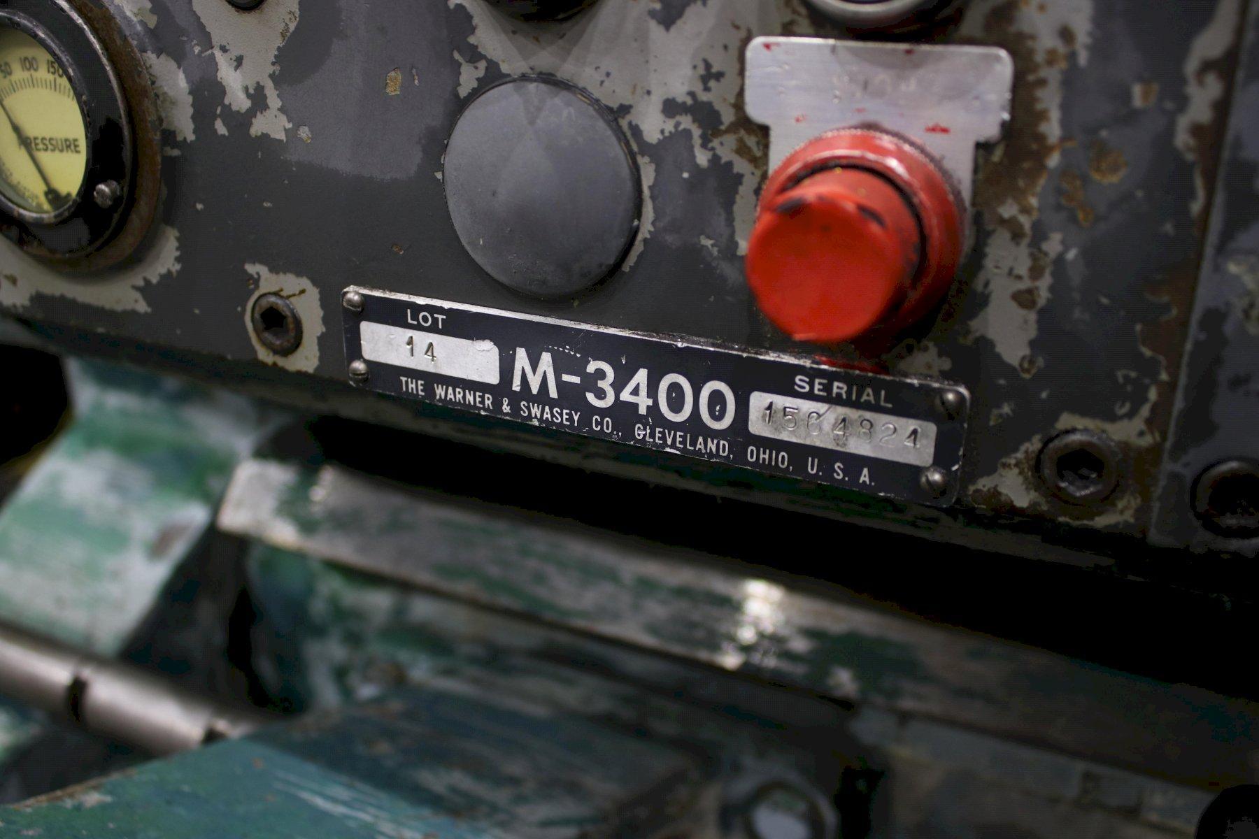 SERIAL .............................. 1564824 MODEL #1A ........................... (M-3400) SQUARE HEAD SWING OVER BED WAYS ................. 18" SWING OVER CARRIAGE HORN ............ 13-1/4" DISTANCE SPINDLE TO TURRET FACE ..... 43-3/4" SPINDLE SPEEDS ...................... (16) 40 TO 1497 RPM LONGITUDINAL AND TURRET FEEDS ....... (16) .004 TO .149 IPR CROSS SLIDE FEEDS ................... (16) .0022 TO .073 IPR DIAMETER OF SPINDLE HOLE ............ 3" CHUCK ............................... 4 JAW LEAD ON THREADING ................... YES BAR FEED ............................ YES 6 POSITION TURRET CARRIAGE STOP ..... YES ADJUSTABLE TOOL HOLDERS ............. 2 FLANGE TOOL HOLDERS ................. 4 RAPID TRAVERSE ....................... YES COOLANT WITH CHIP PAN ............... YES HORSEPOWER MAIN MOTOR ............... 25 |