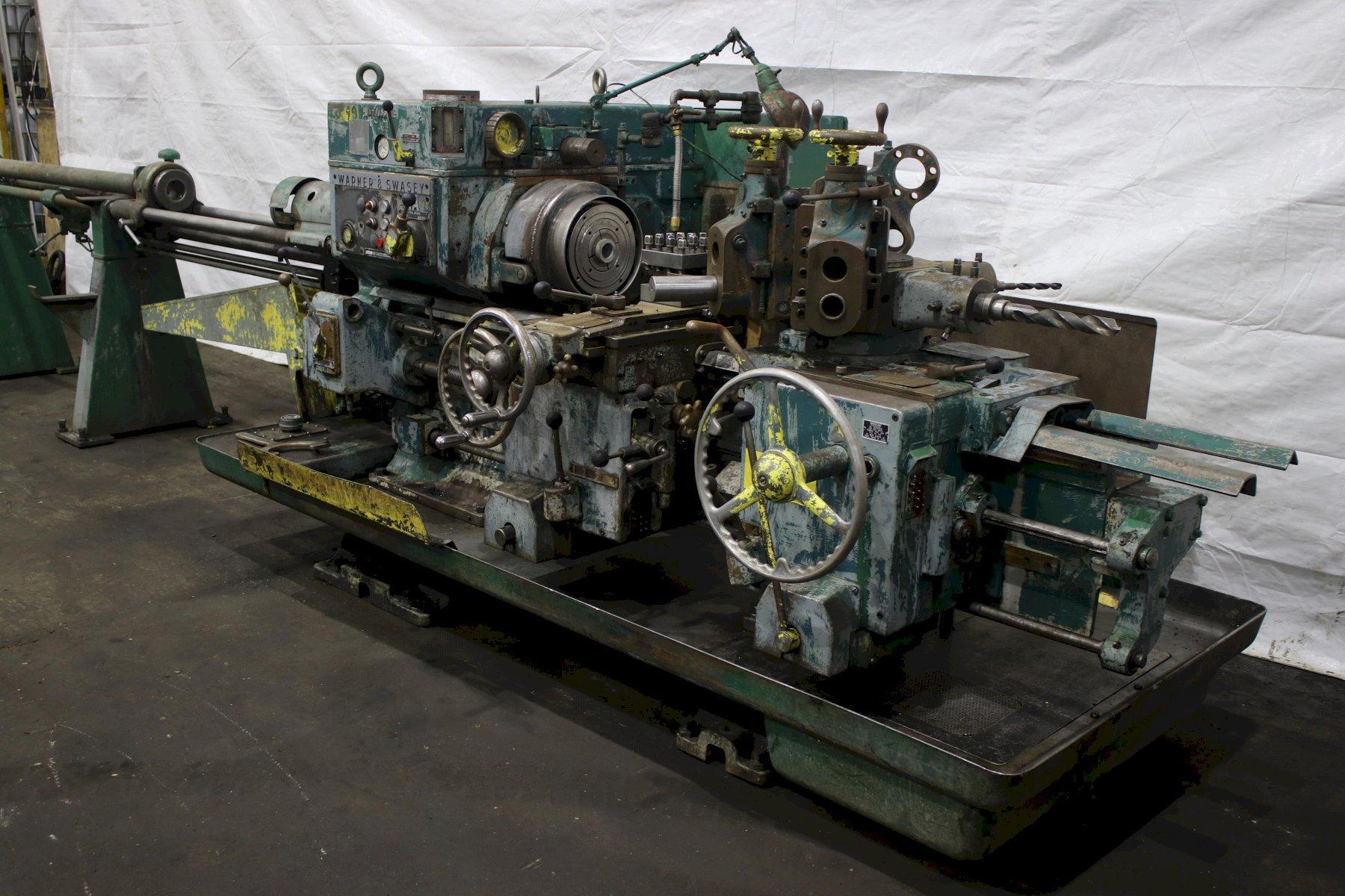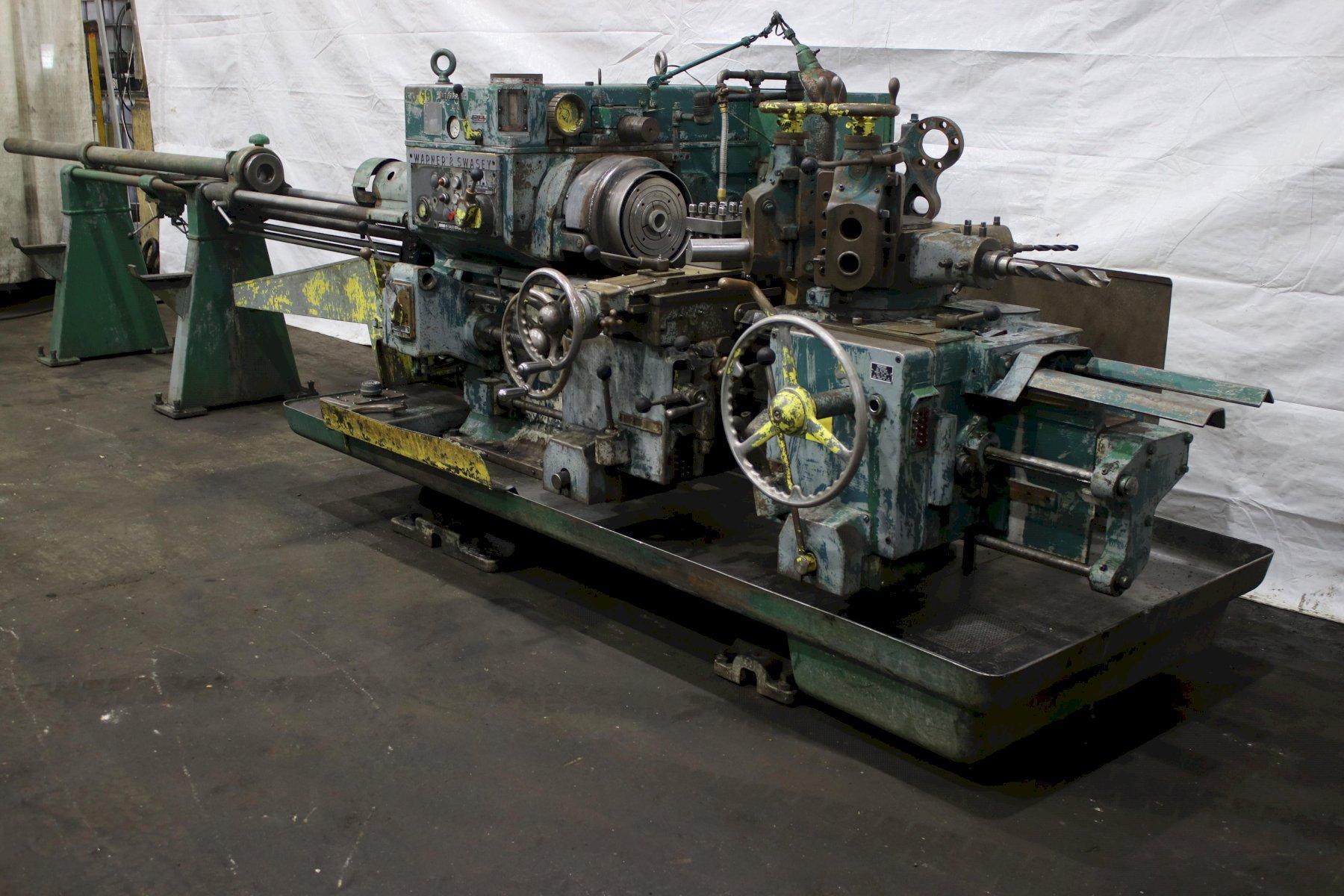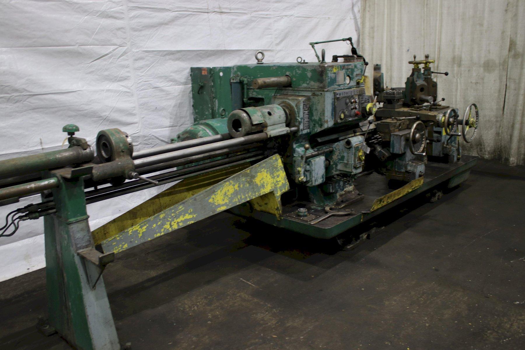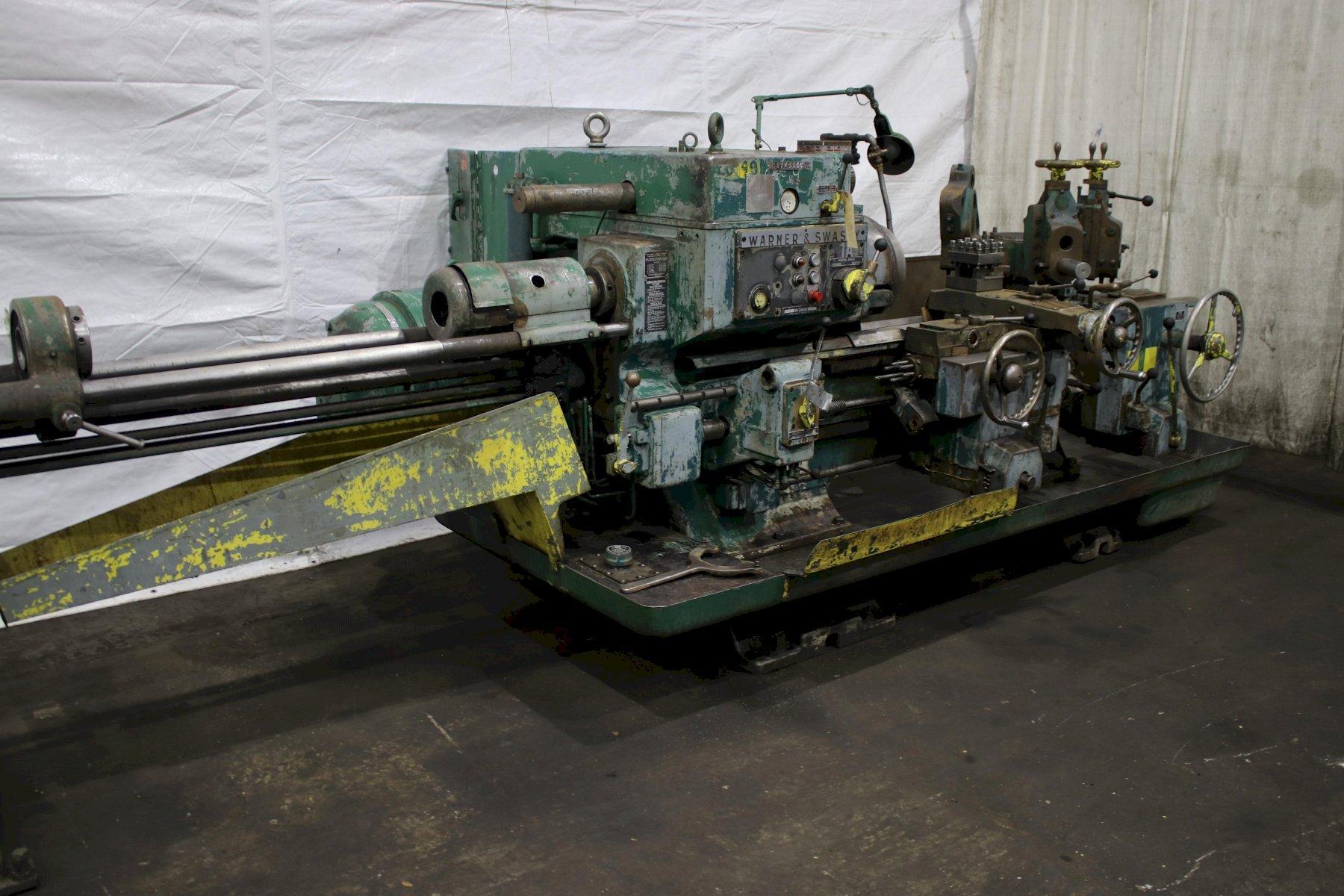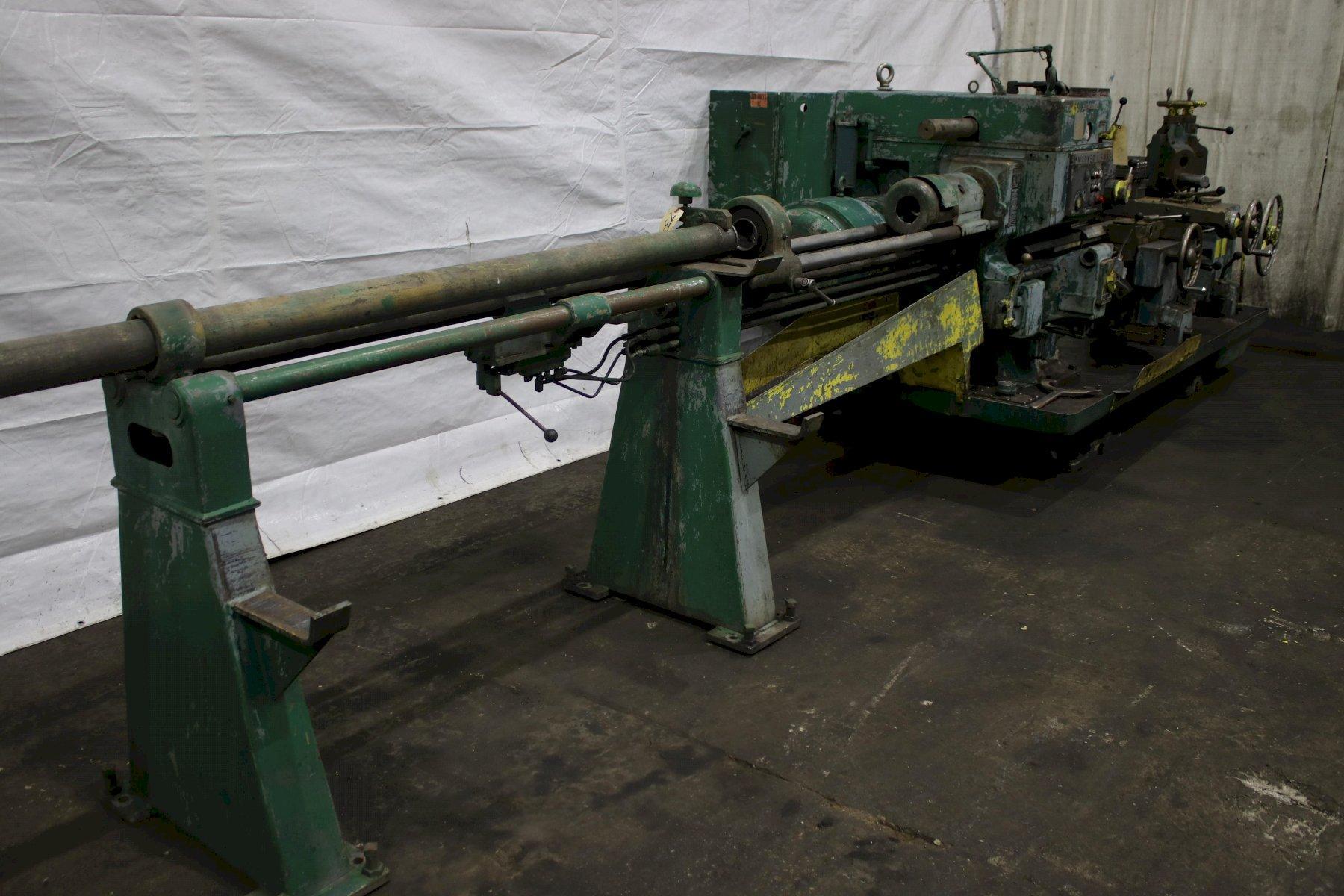 SERIAL .............................. 1564824 MODEL #1A ........................... (M-3400) SQUARE HEAD SWING OVER BED WAYS ................. 18" SWING OVER CARRIAGE HORN ............ 13-1/4" DISTANCE SPINDLE TO TURRET FACE ..... 43-3/4" SPINDLE SPEEDS ...................... (16) 40 TO 1497 RPM LONGITUDINAL AND TURRET FEEDS ....... (16) .004 TO .149 IPR CROSS SLIDE FEEDS ................... (16) .0022 TO .073 IPR DIAMETER OF SPINDLE HOLE ............ 3" CHUCK ............................... 4 JAW LEAD ON THREADING ................... YES BAR FEED ............................ YES 6 POSITION TURRET CARRIAGE STOP ..... YES ADJUSTABLE TOOL HOLDERS ............. 2 FLANGE TOOL HOLDERS ................. 4 RAPID TRAVERSE ....................... YES COOLANT WITH CHIP PAN ............... YES HORSEPOWER MAIN MOTOR ............... 25 |