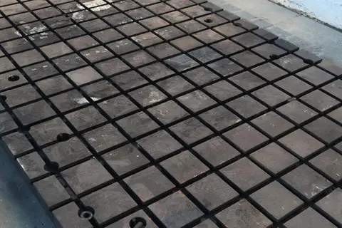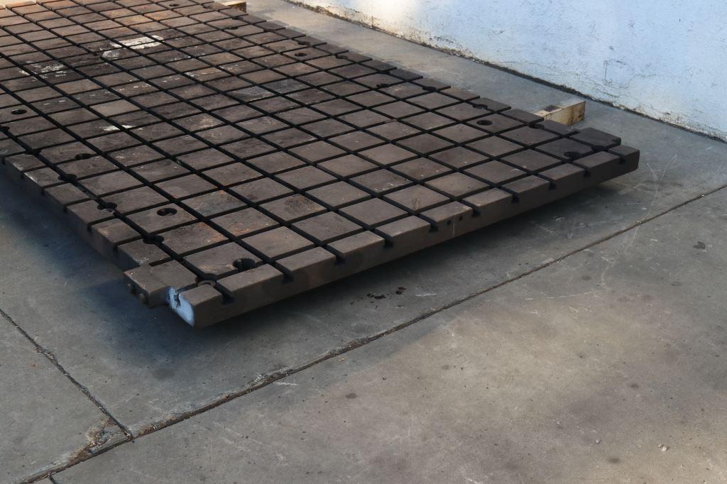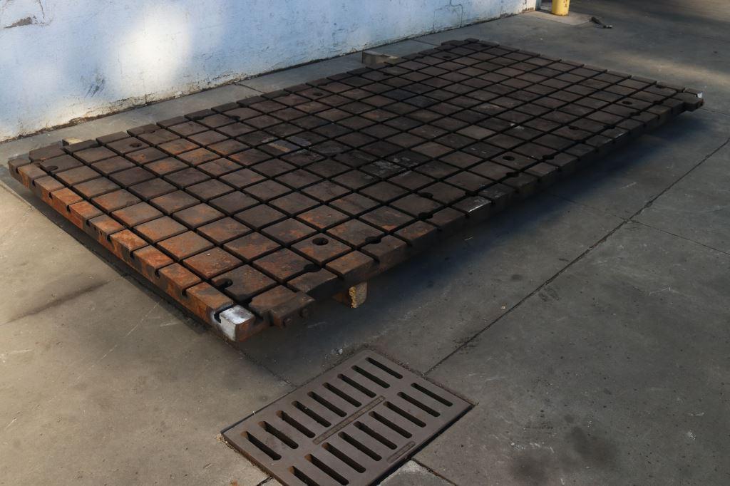 LENGTH OF PLATE .............. 144" WIDTH OF PLATE ............... 72" THICKNESS OF PLATE ........... 3" CONSTRUCTION ................. SOLID STEEL T SLOTS 144" DIRECTION ....... 10 T SLOTS 73" DIRECTION ........ 20 T SLOT CENTERS ............... 7" T SLOT DIMENSIONS AT TOP ..... 3/4" T SLOT DEPTH ................. 1-3/8" T SLOT WIDTH AT BOTTOM ....... 2" LEVELING HOLES ............... YES |