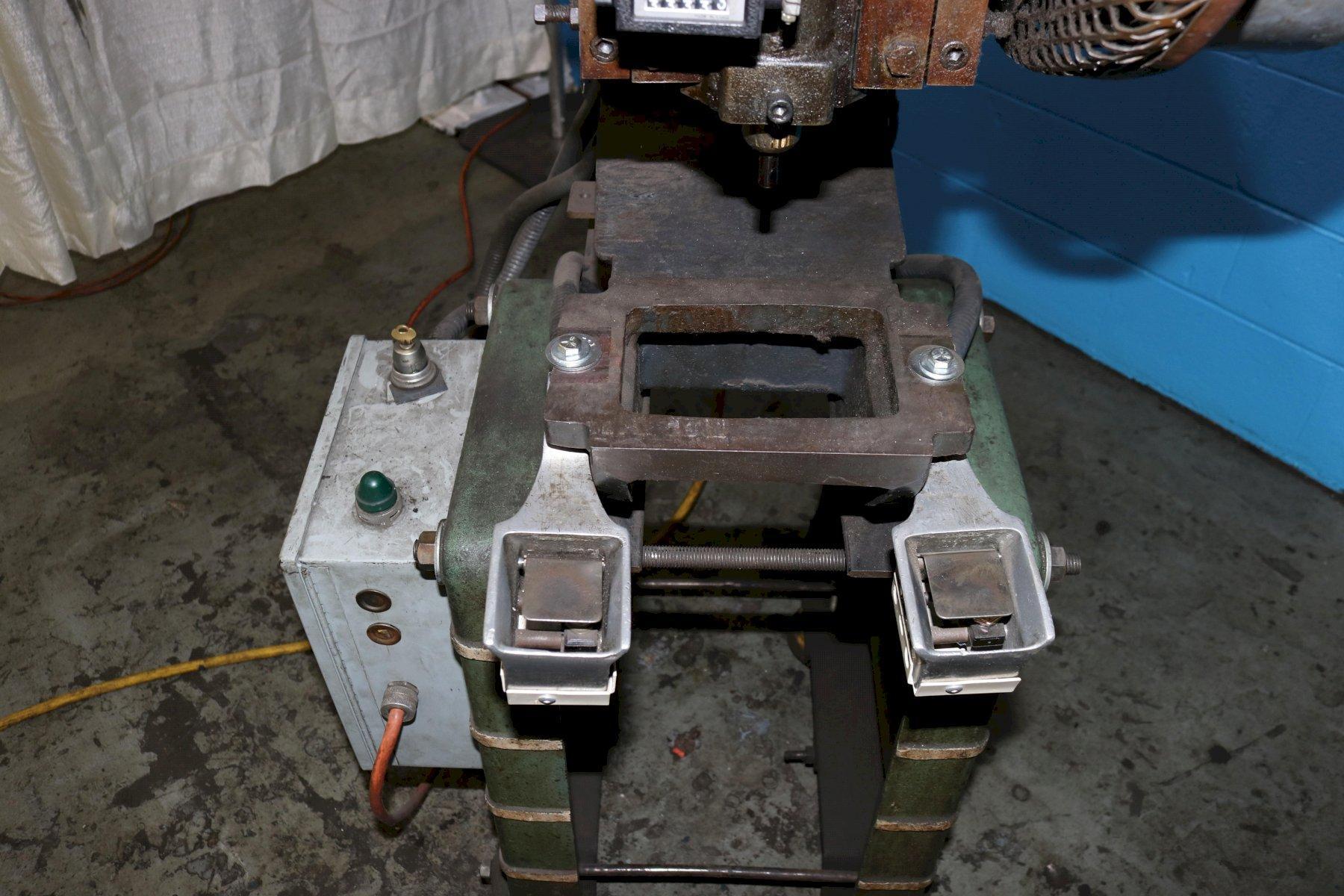 SERIAL ........................... AGK46308 MODEL ............................ BR3 CAPACITY ......................... 3 TON STROKE OF SLIDE .................. 3/4" SLIDE ADJUSTMENT ................. 1/2" SHUT HEIGHT, SDAU ................ 6" AREA OF BED ...................... 9" X 6" AREA OF RAM ...................... 3" X 2-1/2" HOLE IN BED ...................... 5-7/8" X 3-7/8" DEPTH OF THROAT .................. 12" AIR ACCUATED MECHANICAL CLUTCH ... YES DUAL PALM BUTTON ................. YES 110 VOLT SINGLE PHASE ............ YES |