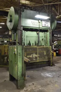 MODEL ........................... C2-800-96-54 CAPACITY ........................ 800 TON STROKE .......................... 8" STROKE PER MIN .................. 12 ADJUSTMENT OF SLIDE (POWER) ..... 8" AREA OF BED ..................... 96" X 54" CUSHION CAPACITY ................ 49.1 TONS @ 100 PSI 44 TONS @ 90 PSI STROKE OF CUSHION ............... 4" MOTOR ........................... 75 HP WEIGHT (EXLUDING CUSHION) ....... 170,500 LBS |