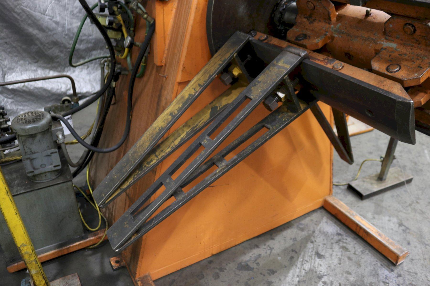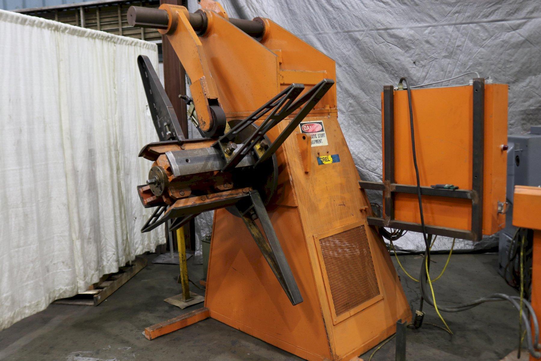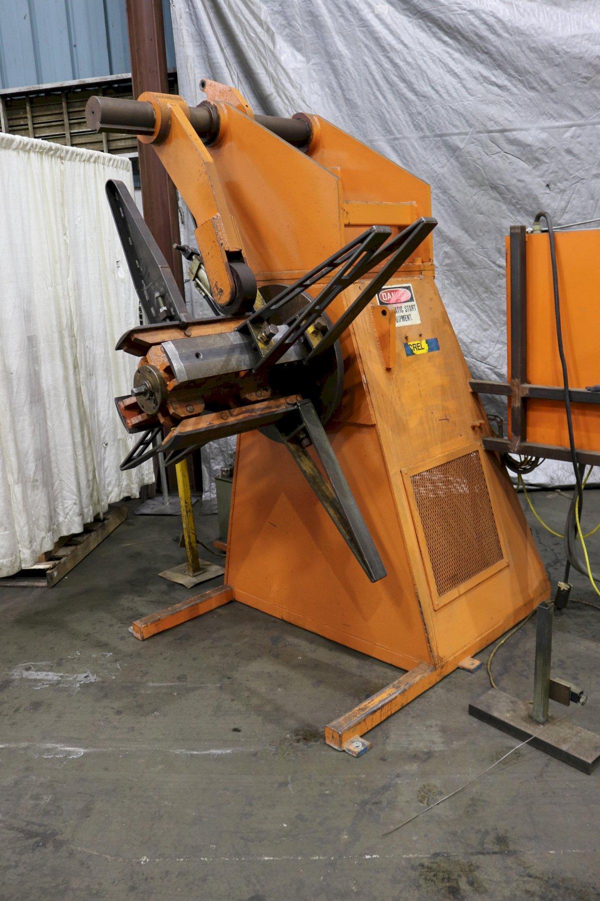 CAPACITY ............... 10,000 COIL WIDTH ............. 20" COIL I.D. .............. 18" TO 25" COIL O.D ............... 72" BACK PLATE ............. 26" HOLD DOWN ARM .......... HYDRAULIC EXPANSION .............. MANUAL BRAKE .................. AIR ROTATION ............... HYDRAULIC MOTORIZED .............. YES KEEPERS ................ 8 MOTOR .................. 2 HORSEPOWER |