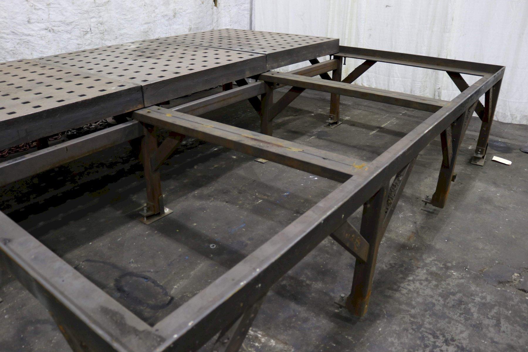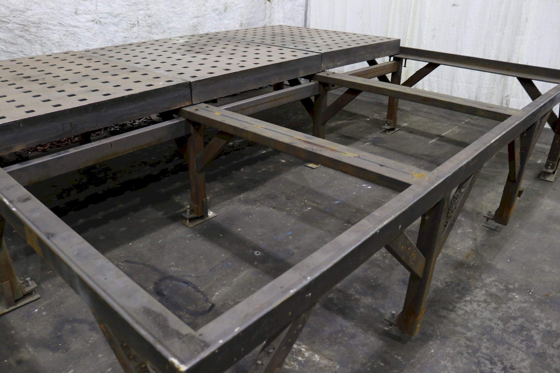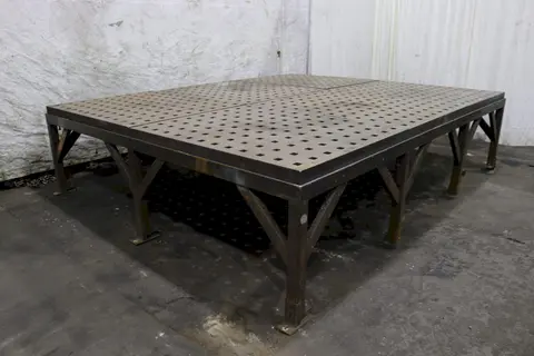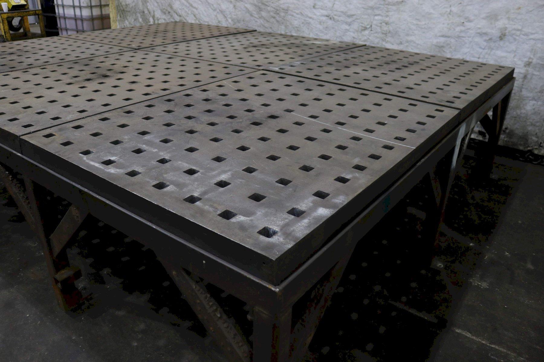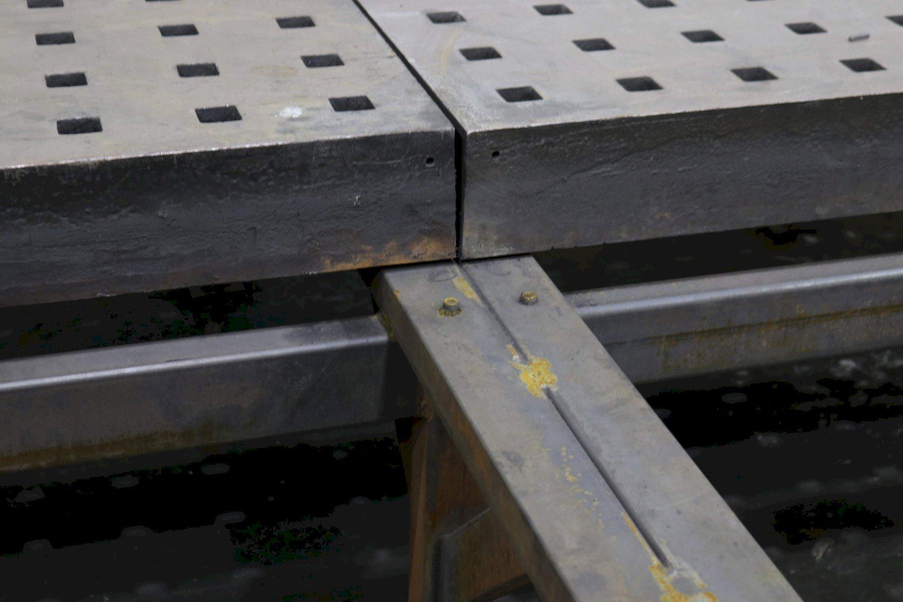 NUMBER OF PLATES ............. 6 PLATE LENGTH ................. 60" PLATE WIDTH .................. 48" PLATE THICKNESS .............. 5-3/8" TOTAL LENGTH ................. 12' TOTAL WIDTH .................. 10' HOLE SIZE .................... 1-1/2" X 1-1/2" NUMBER OF SQAURE HOLE ........ 96 PER PLATE HEIGHT ON STAND .............. 33" LEVLEING SCREW ............... YES |