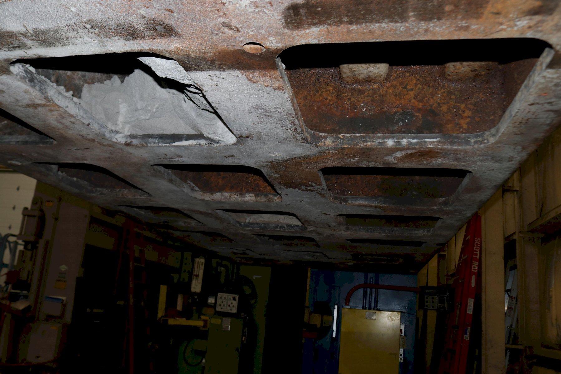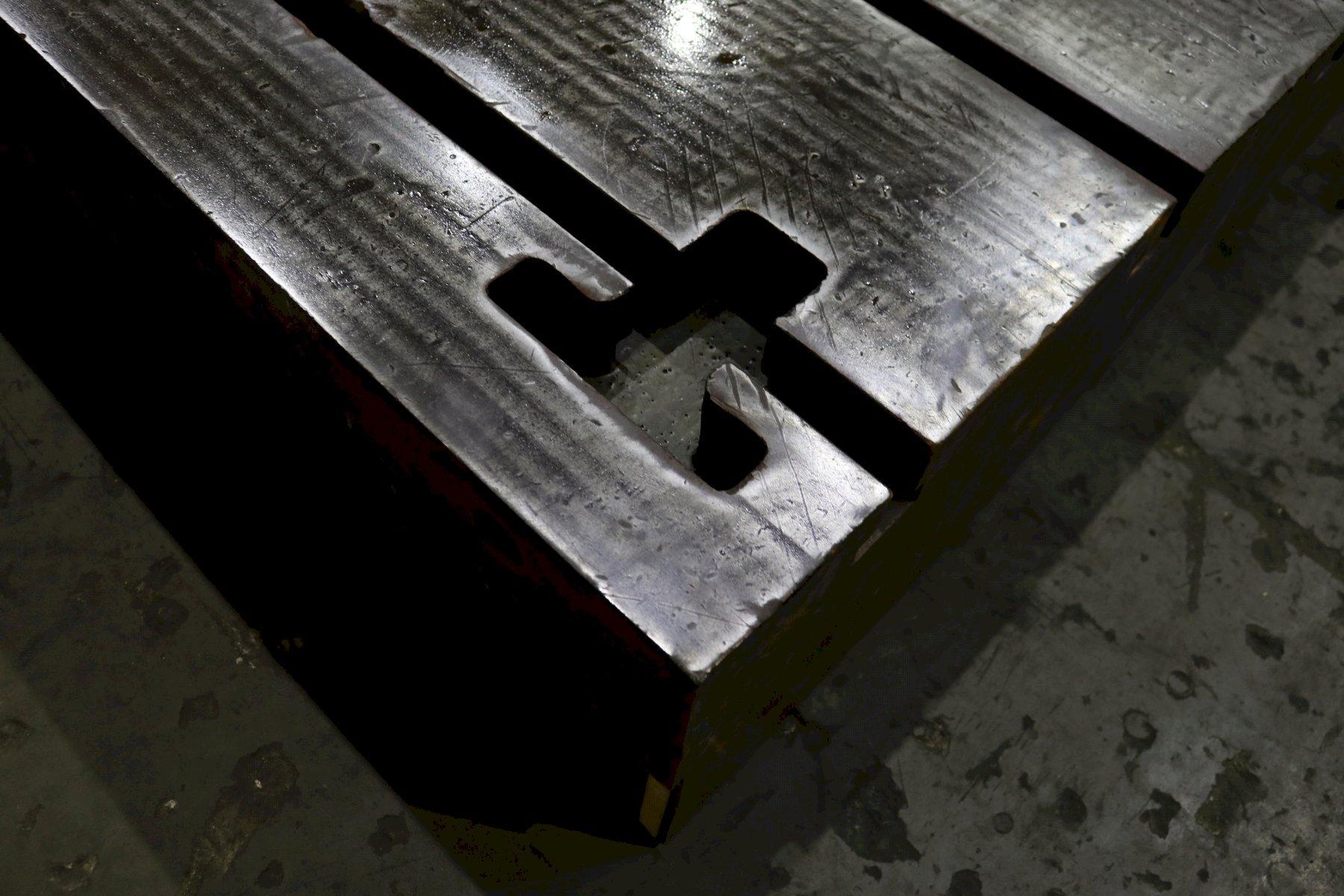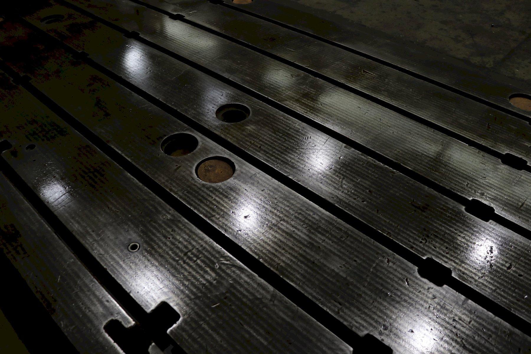 WIDTH OF PLATE ................. 79" LENGTH OF PLATE ................ 18' PLATE THICKNESS ................ 14-1/2" T SLOTS ........................ 6 T SLOT CENTERS ................. 12-1/2" T SLOT WIDTH AT TOP ............ 1-3/8" T SLOT DEPTH ................... 2.3/4" T SLOT WIDTH AT BOTTOM ......... 2-1/2" |