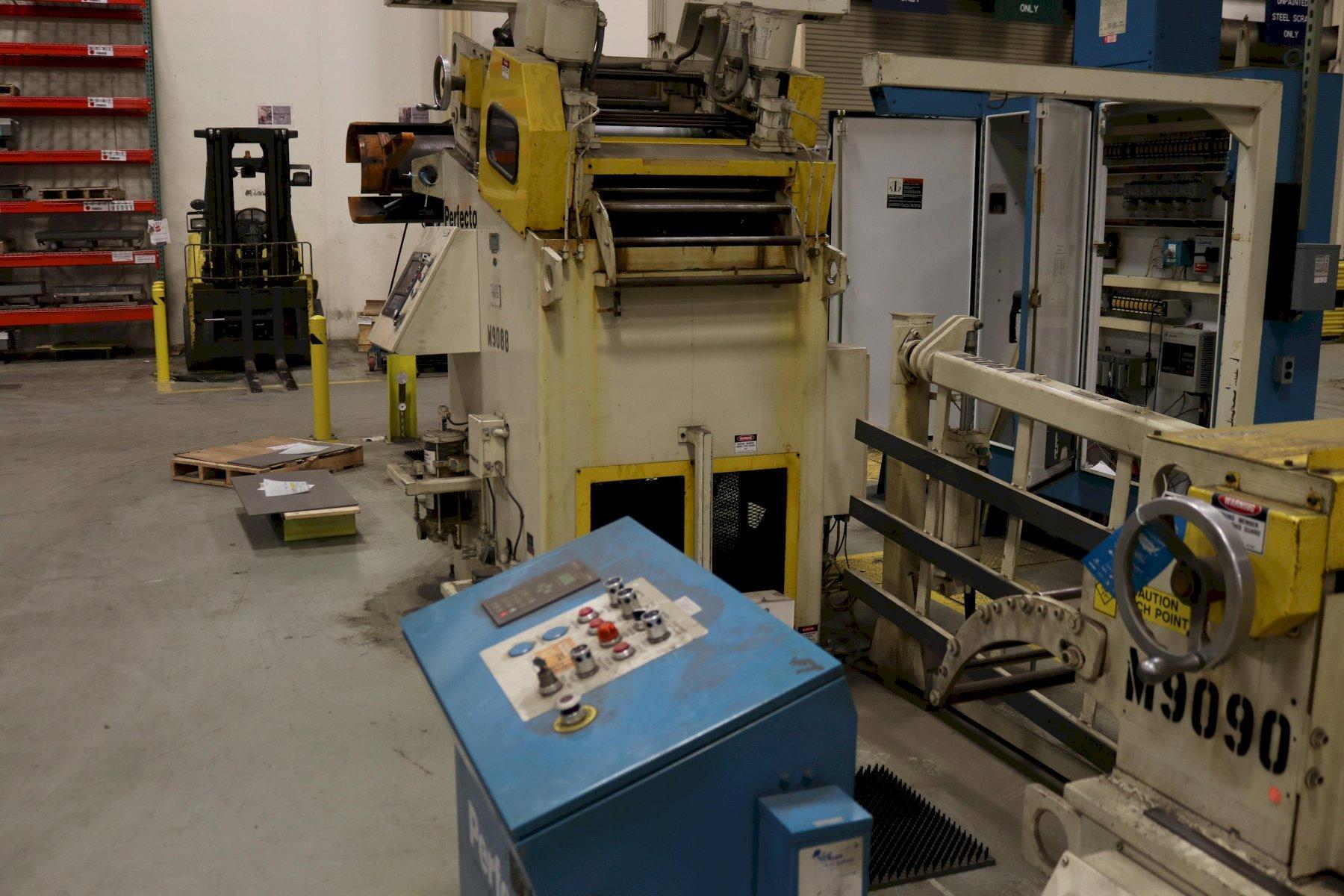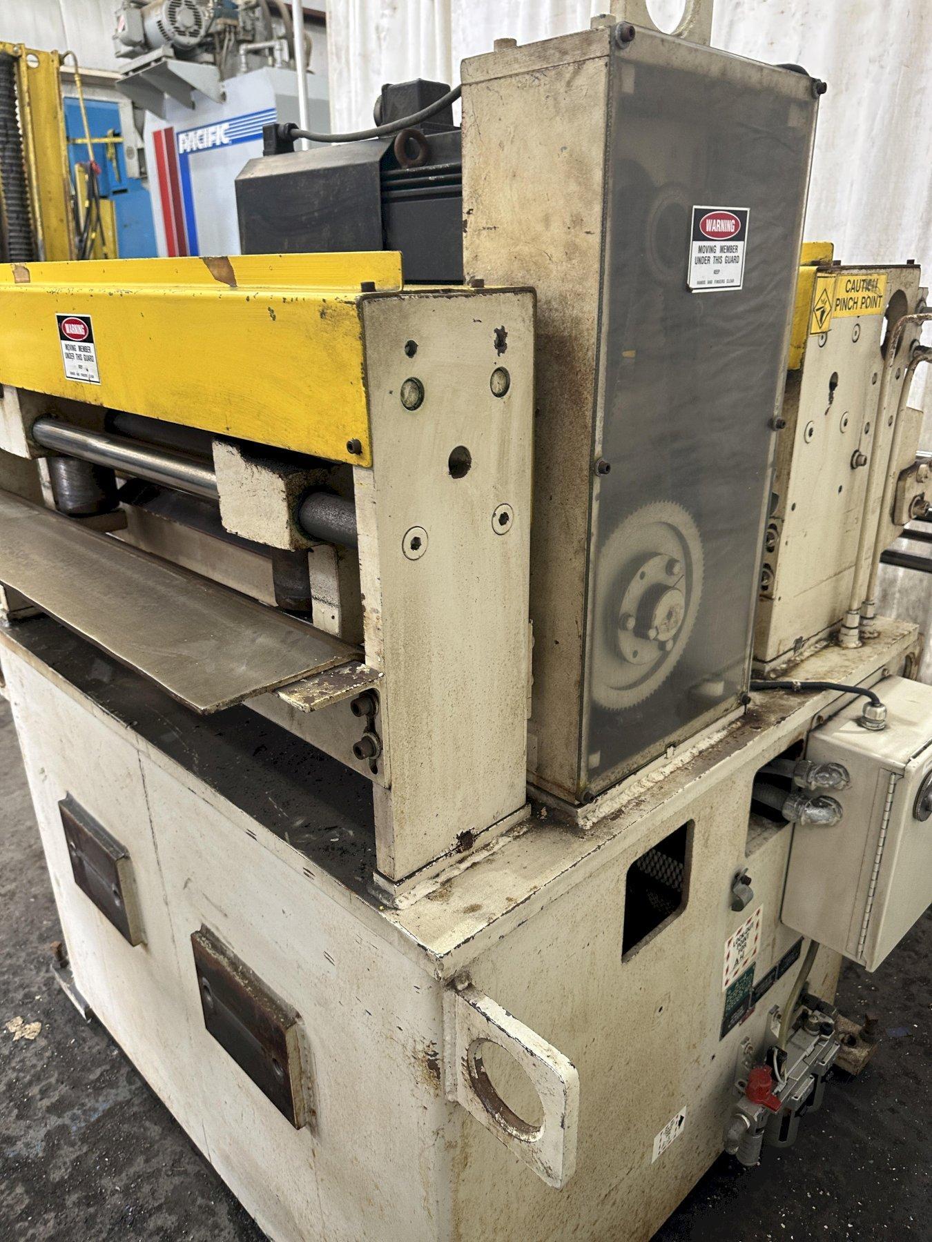 SERIAL ........................... 20063 MODEL ............................ FES40024 YEAR NEW ......................... 2001 MAXIMUM WIDTH .................... 24" CAPACITY PRE STRAIGHTENED STEEL .. (50,000 PSI YIELD) CAPACITY THICKNESS ............... .030" MAX CAPACITY THICKNESS ............... .015" MINIMUM PASSLINE ABOVE FLOOR........ ..... 39.76" FIXED LINE DIRECTON .................... LEFT TO RIGHT FEED LENGTH AT SPM ............... 48" @ 15 SPM MAXIMUM PRESS SPEED .............. 15 SPM LOOP LENGTH ...................... 212" |