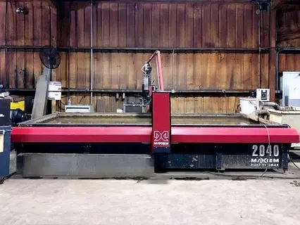 Equipped With: A-Jet Multi Axis Cutting Head Terain Follower Maxiem M40 40 HP Direct Drive Pump VSP SRS Solid Waste Removal Power Unit Garnet Collection Hopper W/ Suction Line And Catcher Tank Koolant Kooker Chiller (24000 BYU/HR 460v 3PH) 600 Lbs. Abrasive Hopper Abrasive Waste Removal System