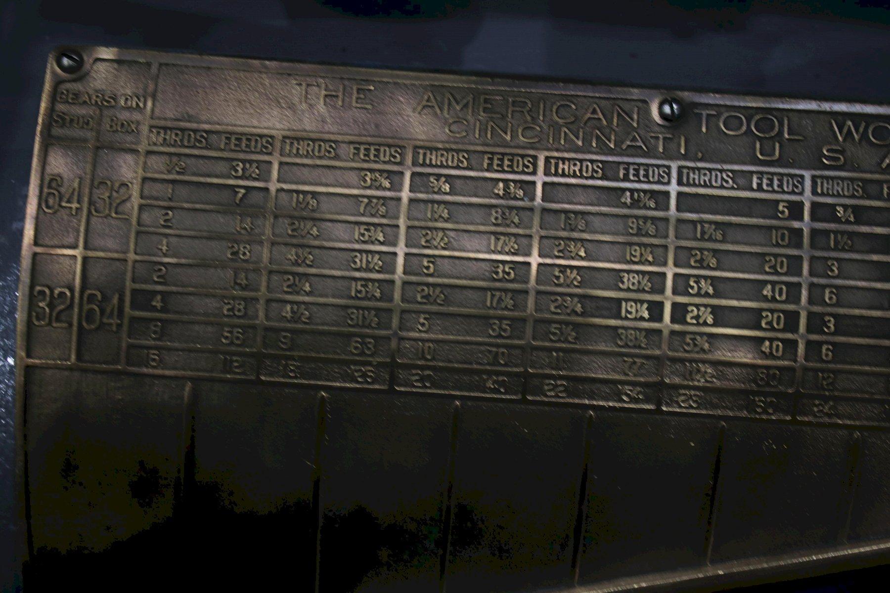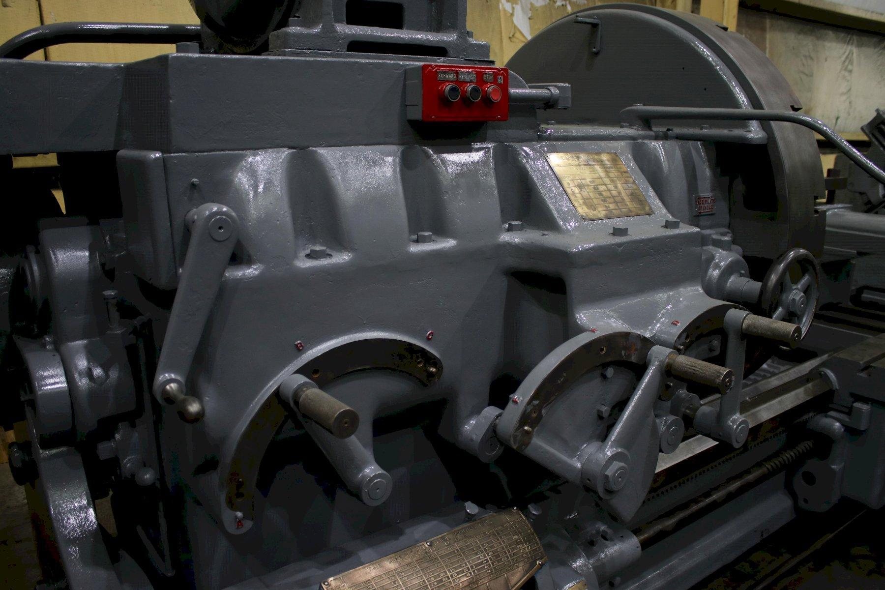 SERIAL ........................... 57995 SWING OVER WAYS .................. 50" SWING OVER CARRIAGE .............. 42" DISTANCE BETWEEN CENTERS ......... 156" SPINDLE SPEEDS FACE PLATE DRIVE .. 1.8 TO 33 RPM SPINDLE SPEEDS ................... 42 TO 157 RPM CHUCK ............................ 48" 4 JAW THREADS .......................... 1/2 TO 28 TPI FEEDS ............................ .196 STEADY REST ...................... YES DIAMETER OF SPINDLE HOLE ......... 2-1/2" MOTOR ............................ 40 HORSEPOWER |