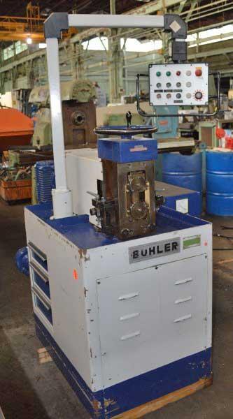 1" (25.4mm) X 2" (50.8mm) BUHLER 2 HIGH ROLLING MILLS MACHINE 13899 MANUFACTURER: BUHLER GMBH, GERMANY MODEL: EW 100 TYPE: TWO HIGH ROLLING MILL EQUIPPED WITH: Manually Adjustable Roll Vari-Speed Drive Infinitely Variable Speed Control Swing Away Pendant Built-In Tooling Cabinet w/Tooling CATALOGUE SPECIFICATIONS: Roll, Diameter: 1" 25.5 MM Roll, Length 2" 50 MM Center Distance Of Rolls: Minimum2.75" 70 MM Center Distance Of Rolls: Maximum4.75" 120 MM Roll Speeds: Rangeto 40 MPM Main Drive Motor: 8.5 KW DC **Temporary Specifications Subject to Revisions** ** PRICE QUOTED AS IS WHERE IS SUBJECT TO PRIOR SALE ** **ALL SPECIFICATIONS ARE SUBJECT TO VERIFICATION BY PURCHASER** See this item on our web site: http://inv.mcmillanconroy.com/q/webinv/005249=x,13899 |