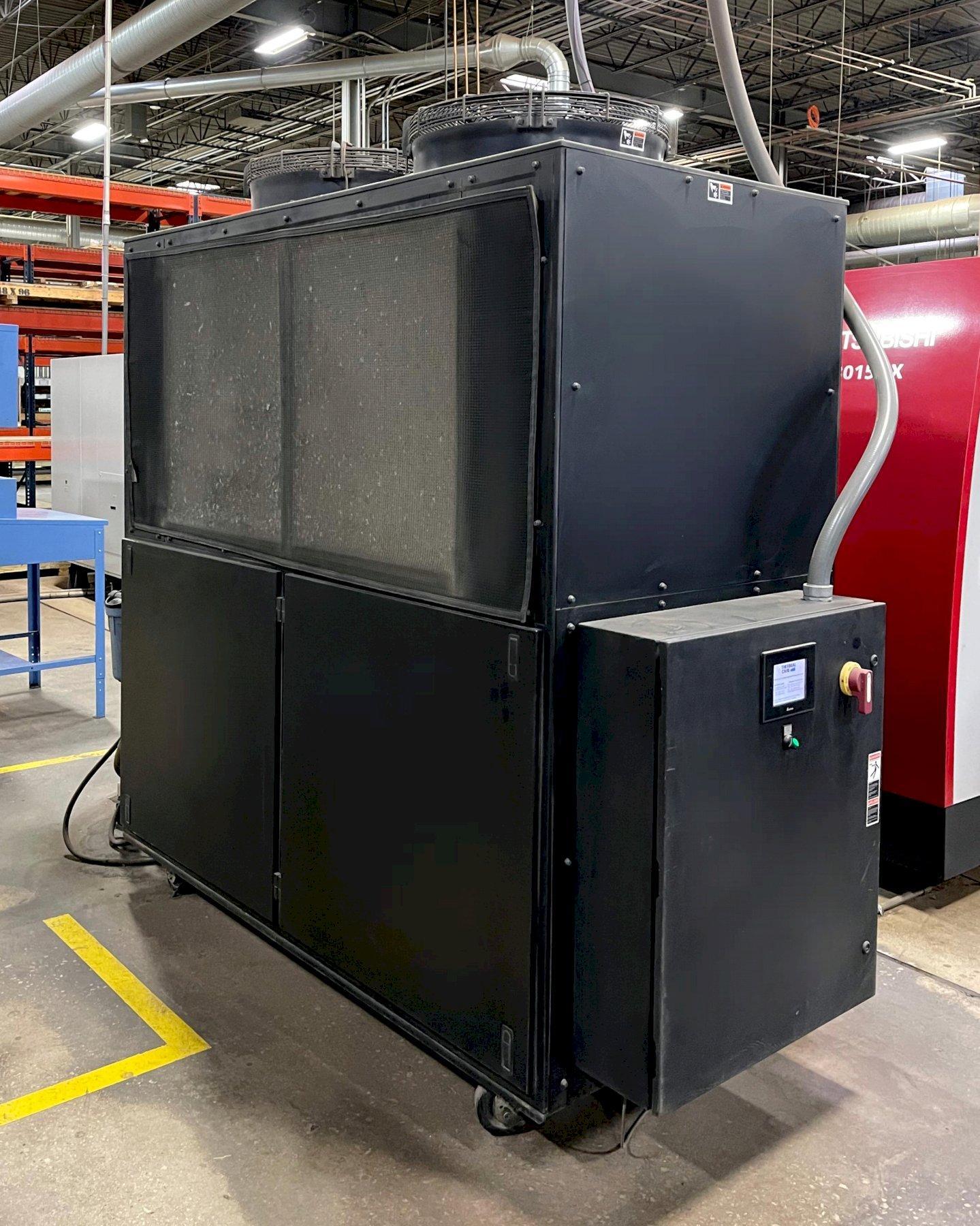 Equipped With: Mitsubishi 700 Series CNC Control 15.0” TFT Color LCD Touch Screen Mitsubishi ML45CF-R 4500 Watt Resonator Duel Pallet Table System Chiller Unit |