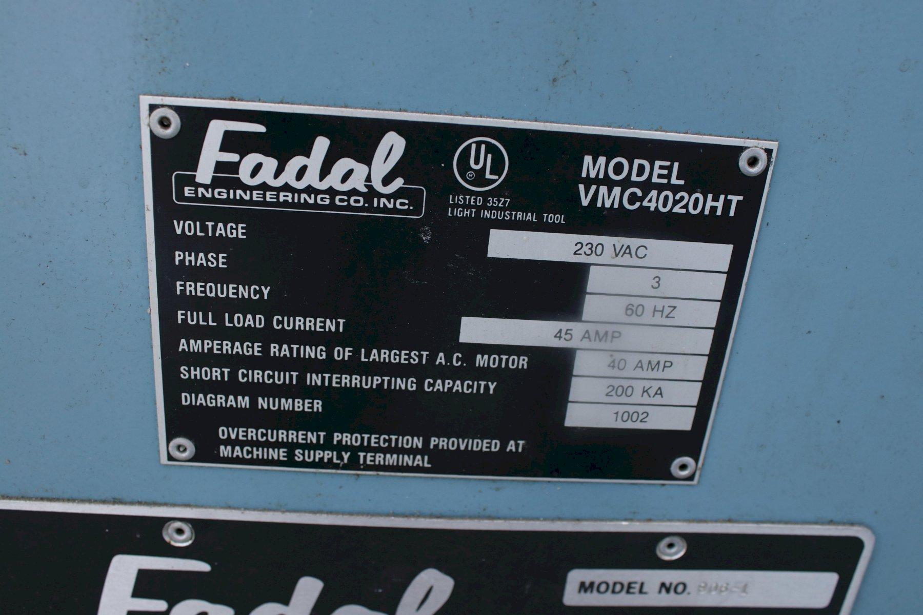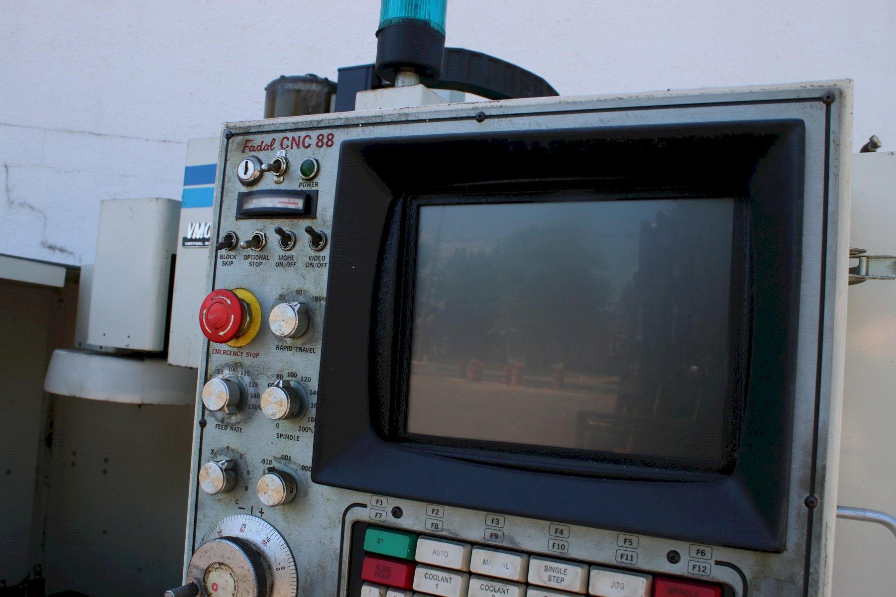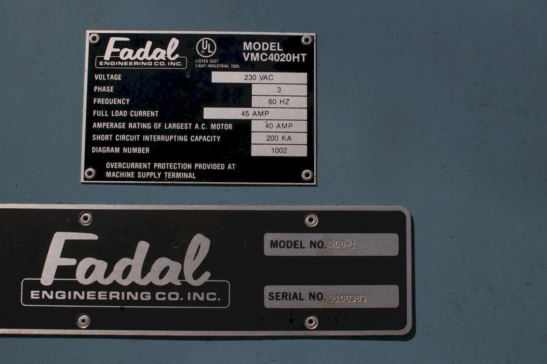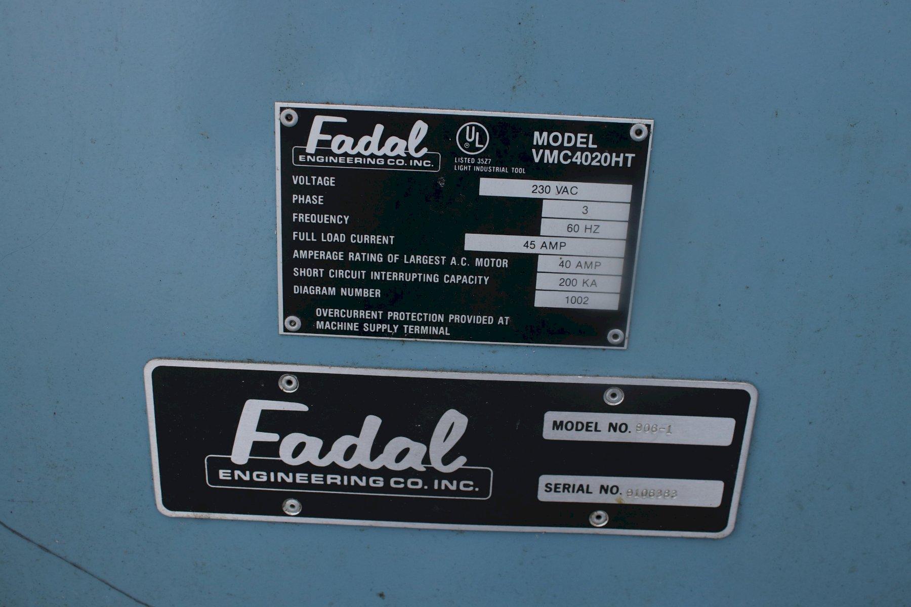 SERIAL ......................... 9106383 MODEL .......................... 906-1 VMC 4020 YEAR NEW ....................... 1991 TABLE SIZE ..................... 40" X 20" TABLE CAPACITY ................. 1,500 LBS FLOOR TO TABLE ................. 31" CUTTING FEED RATES (X,Y,Z) ..... .01-250 IPM RAPID TRAVEL ................... 700 IPM X AXIS TRAVEL .................. 40" Y AXIS TRAVEL .................. 20" Z AXIS TRAVEL .................. 20" SPINDLE NOSE TO TABLE .......... 4" MIN, 24" MAX SPINDLE CENTER TO COLUMN WAYS .. 20" SPINDLE SPEED .................. 75 TO 10,000 RPM SPINDLE TAPER .................. CAT 40 CONTROL ........................ FADAL CNC88 HS TOOL CHANGER ................... 21 STATIONS COOLANT THRU SPINDLE ........... YES MOTOR .......................... 15 HORSEPOWER |