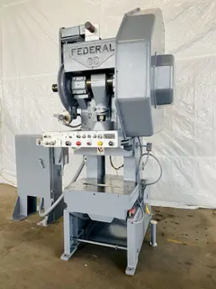 REMANUFACTURED YEAR ....... 1996 STYLE ..................... OBI (OPEN BACK INCLINE) MODEL ..................... 60 CAPACITY .................. 60 TONS STROKE LENGTH ............. 3" SLIDE ADJ ................. 2.5" SHUT BED HEIGHT OVER BED .. 14.68" SLIDE RAM AREA SIZE ....... 13.25" X 21" BED AREA SIZE ............. 32" X 21" THROAT DEPTH .............. 11.5" SPEED ..................... 200 SPM OPERATING MODES ........... INCH / SINGLE / AUTO SINGLE AIR CLUTCH ................ YES DUAL PALM BUTTON TRIP ..... YES CENTRAL LUBE SYSTEM ....... YES E-STOP BUTTON ............. YES MOTOR ..................... 10 HP |