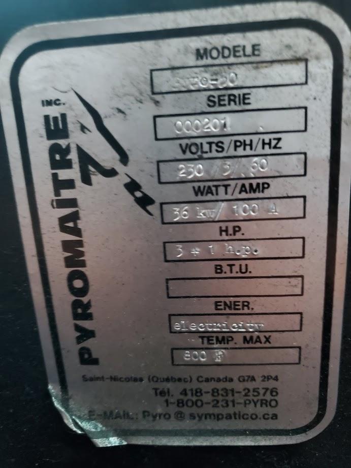 SN- 000201 3 hp Conveyor 12" Wide Max temp- 800 F 230V/ 3ph |