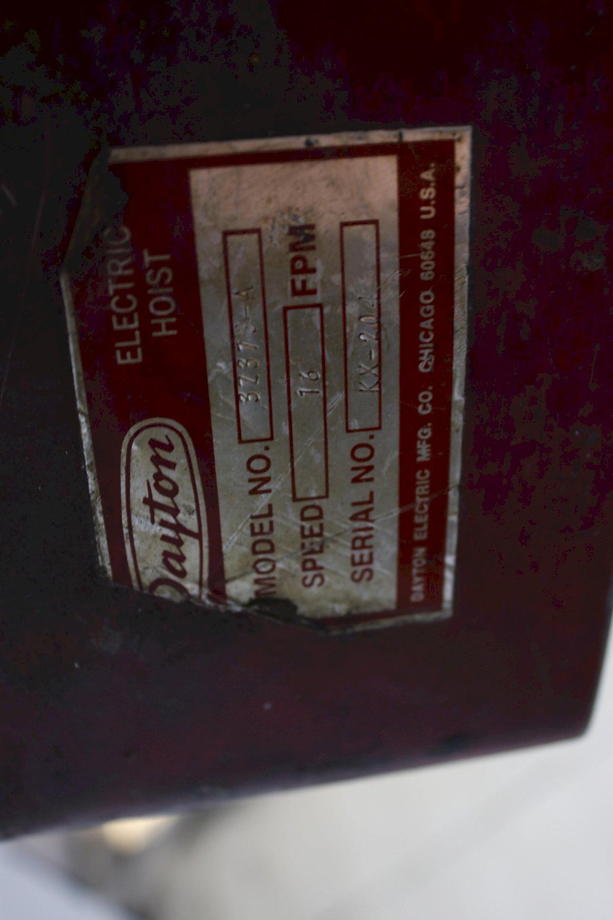SERIAL ..................... KX204 MODEL ...................... 3Z373-A CAPACITY ................... 1 TON LIFT SPEED ................. 16 FPM LIFT ....................... 10' PENDANT .................... YES |