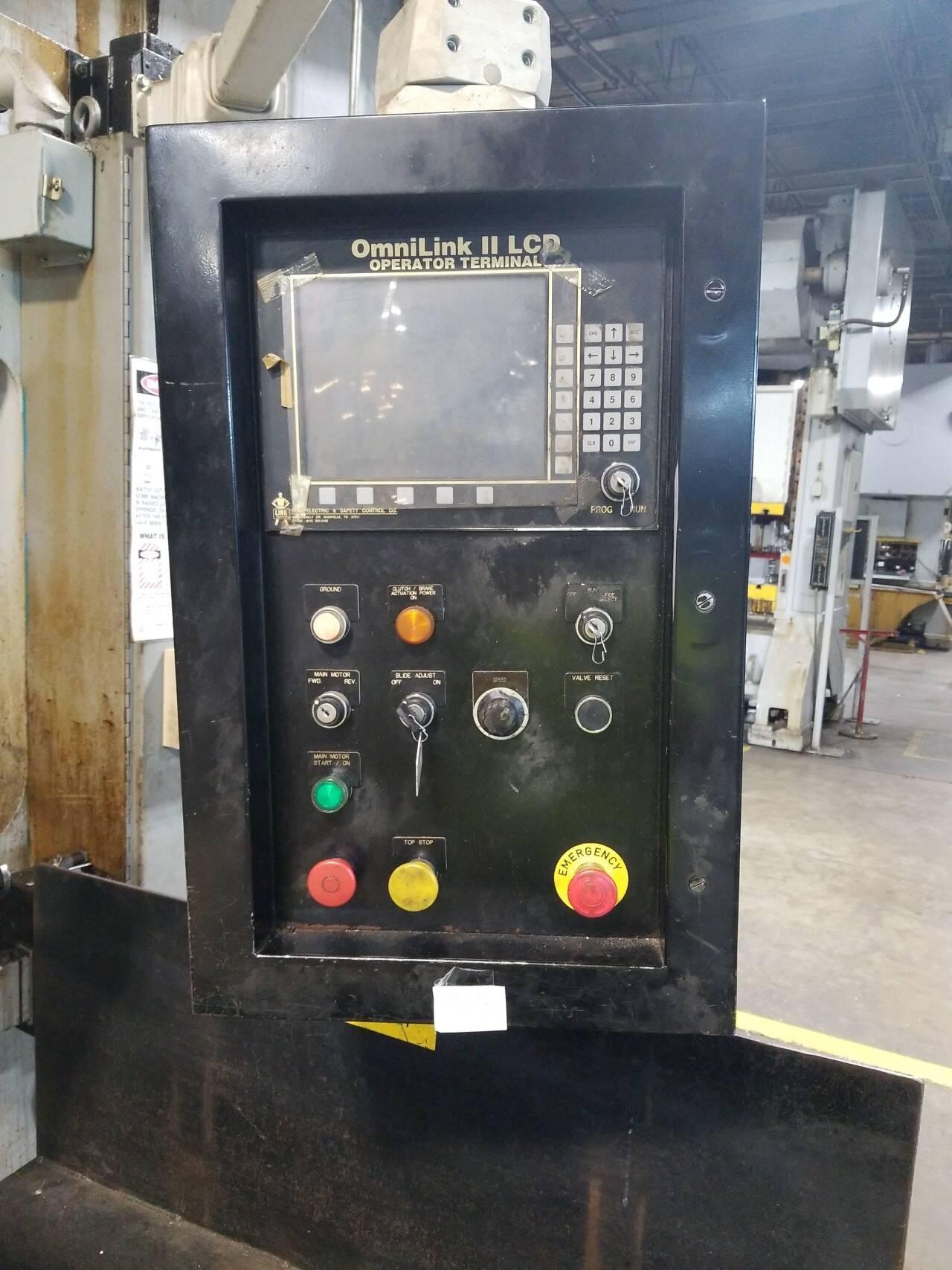 Verson Model# 250-GP2-250-72 250 ton Capacity 8" Stroke 19" Shut Height 6" Motorized Adjustment 84" x 42" Bed Area 72" x 42" Slide Area 40 SPM Equipment and Features Air Clutch and Brake Air Counterbalances Recirculating Lube System T-Slotted Ram and Bolster Omni Link II LCD Operator Terminal Link Black Max Light Curtains T-Stand Palm Buttons Vibro Floor Mounts Knockouts in Ram Can be seen underpower in S&G Livonia Warehouse! |