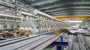 Furnace Type : Roller Hearth Continuous Effective Size Hardening Furnace : 2380(mm) x 57800(mm) Tempering Furnace : 2380(mm) x 61200(mm) Capacity Maximum : 30 Ton/Hr Normal : 25 Ton/Hr 3" - 12" Diameter Pipe Roller Conveyor for 3 pipes Skewed Conveyor shafts for Pipe Rotation throughout process Heat Treatment : Quenching & Tempering : Normalizing Component of the Facility : Charging Table Hardening Furnace Quenching Transfer Conveyor Tempering Furnace Exit Conveyor Stock Conveyor Water Cooling System Control System Hardening Furnace: Use Temperature : 860 C - 1000 C Hearth Roller Material : SCH 22 Burner : WS REQUMAT M250(6),M200(96) Water Quenching Type : Water Ring Jet Nozzle Accessory : Water Filtering System Cooling Tower System Tempering Furnace Use Temperature : 650C - 800C Hearth Roller Material : SCH 13 Burner : WS REQUMAT M250(4),M200(68) |