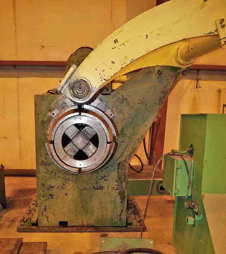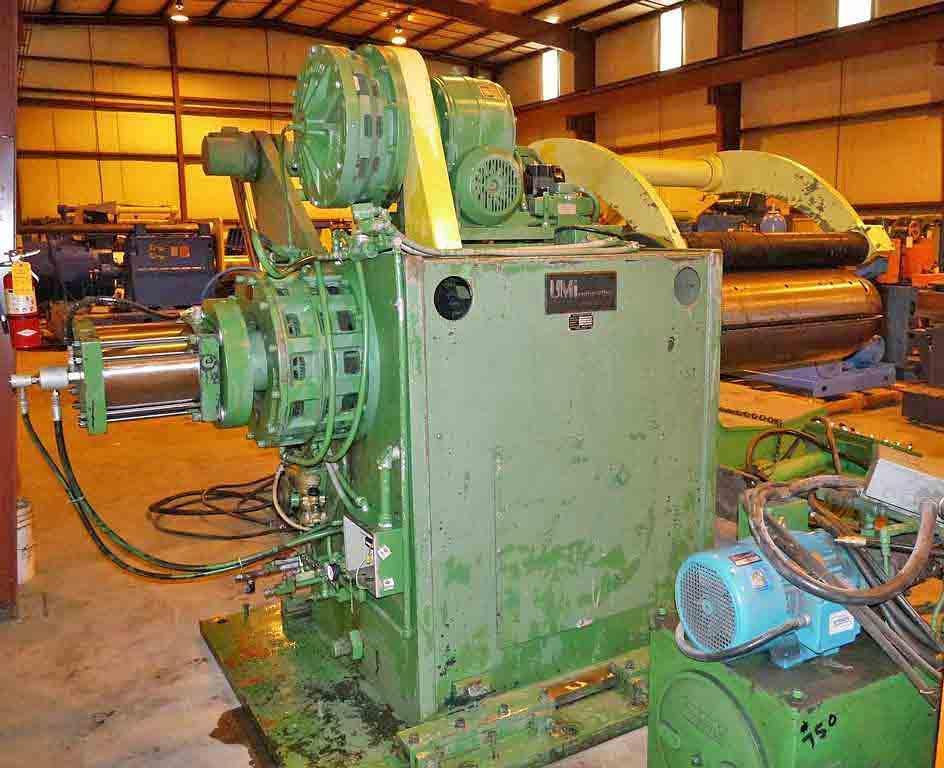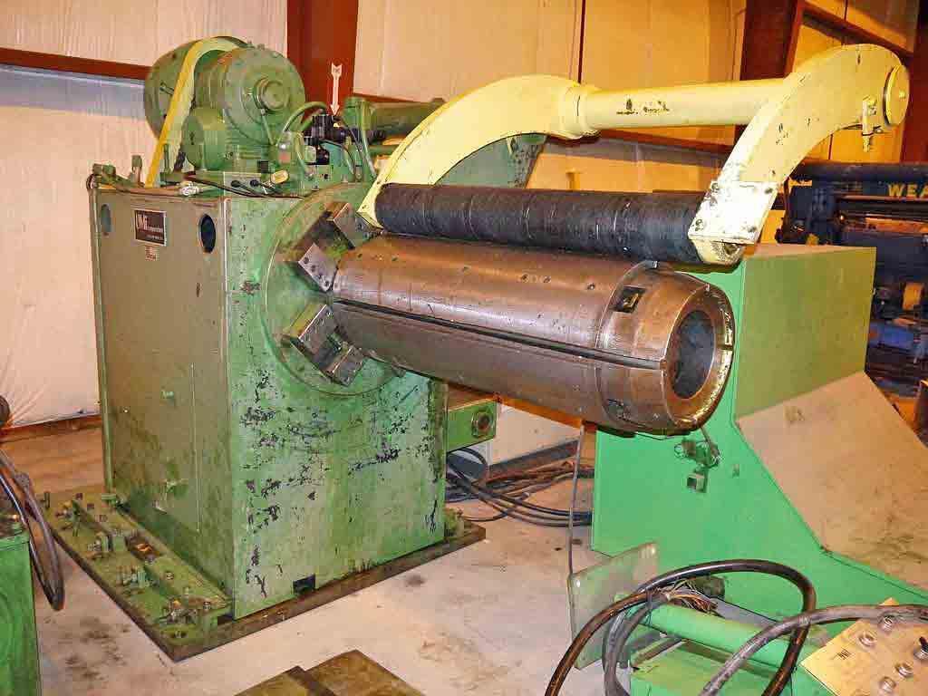COIL I.D. RANGE ........................ 16"-24" BOLT ON PADS FOR I.D. ................... 26" MANDREL FACE WIDTH ...................... 46.75" MANDREL SEGMENT ......................... 4 PASS LINE FLOOR TO CENTER OF MANDREL .... 48" OVERALL SIZE: LENGTH .................................. 150" WIDTH ................................... 94" HIGTH ................................... 87" FULL WIDTH HOLDDOWN ROLL, RUBBER COVERED HYDRAULIC MOTOR THREADING DRIVE WITH AIR CLUTCH WICHITA WATER COOLED BRAKE SLIDING BASE LINE DIRECTION RIGHT TO LEFT |