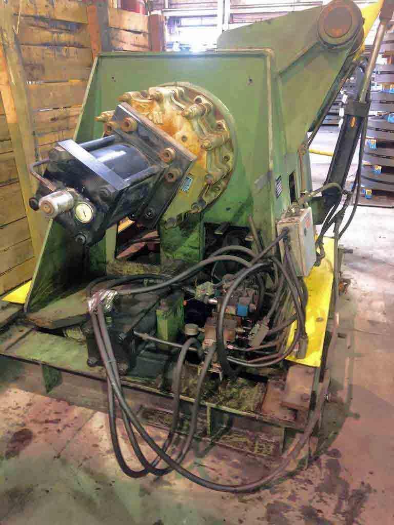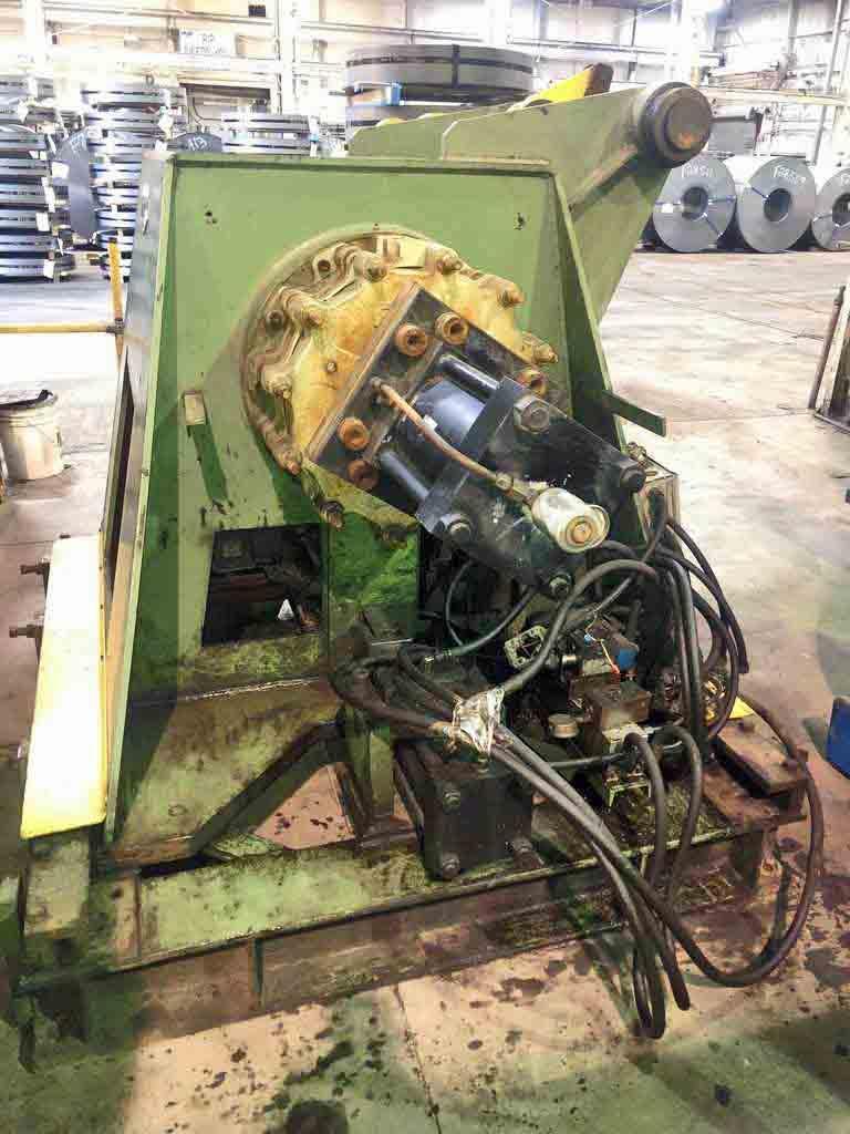 | CAPACITY ................................... 30,000# FACE MANDREL ............................... 62" EXPANSION .................................. 15.5" - 20.5" HP ......................................... 5 VOLTS ...................................... 230/460 OD CAPACITY ................................ 60" PASSLINE FROM FLOOR TO CENTER OF MANDREL ... 42" 4 SEGMENT PUMPKIN TOOTH MANDREL EATON 218WCB AIR BRAKE HOLDDOWN ROLL SLIDING BASE |