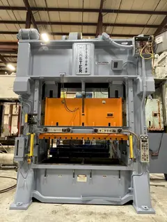 Model# E2-300-96-48 Mechanical Metal Stamping Press 300-ton Capacity 12" Stroke 30" Shut Height 6" Motorized Adjustment 96" LR x 48" FB Bed Area 96" LR x 48" FB Slide Area 0-80 VSPM Equipment and Features Air Clutch and Brake Air Counterbalances Monitor Flow Recirculating Lube System T-Slotted Ram and Bolster Air Cushions - (2) 26.5 @ 100 PSI, 6" Stroke 28" Wide Windows Palm Buttons Floor Standing Overall Height 210" Tall (17'6") Can Be Seen Under Power Upon Request at the S&G Press Livonia Michigan Warehouse!